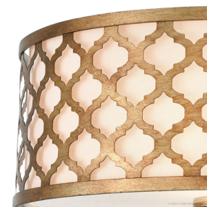 Featuring an exotic drum design, the Arlington collection draws inspiration from Moroccan motif artistry. The handsome drum housing incorporates the Moroccan glamor on the outermost circumference and includes gorgeously intertwined and patterned bulging shapes framed within the top and bottom cylindrical metallic strips.