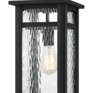 The Carrington collection of outdoor lanterns is designed to create a strong first impression. The lanterns feature a robust, rectangular frame finished in earth black, giving them a sleek and versatile appearance that complements any modern farmhouse or coastal style home. The frame encases clear water glass panels with a distinct, wavy texture that beautifully diffuses the light and adds visual interest.
