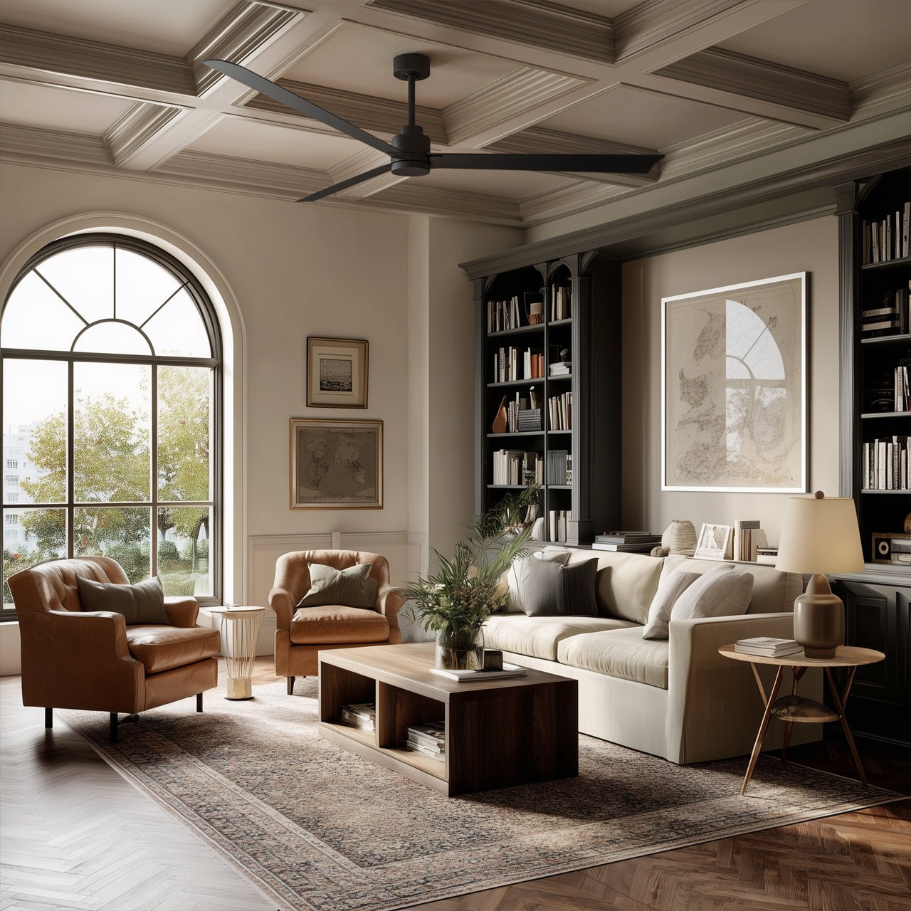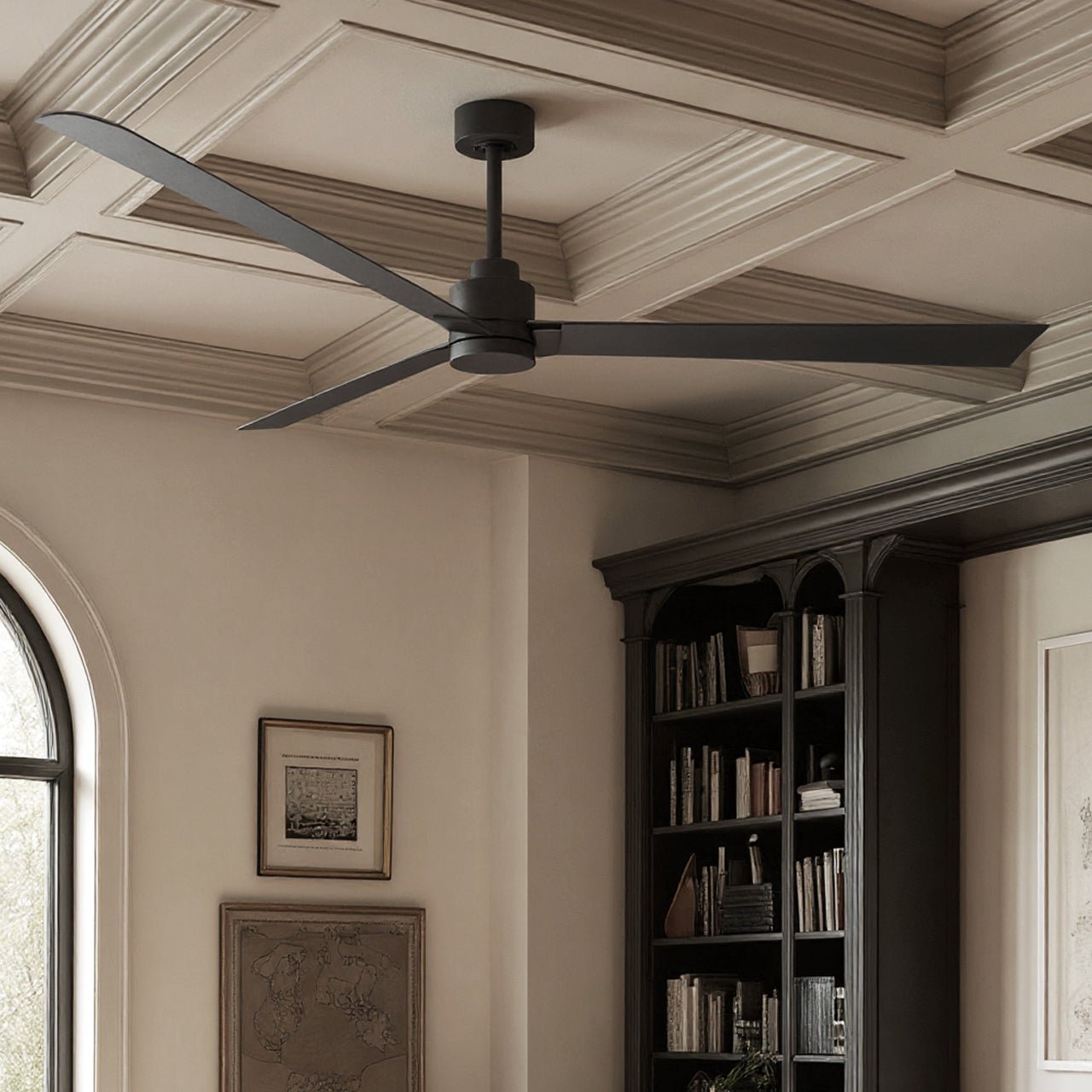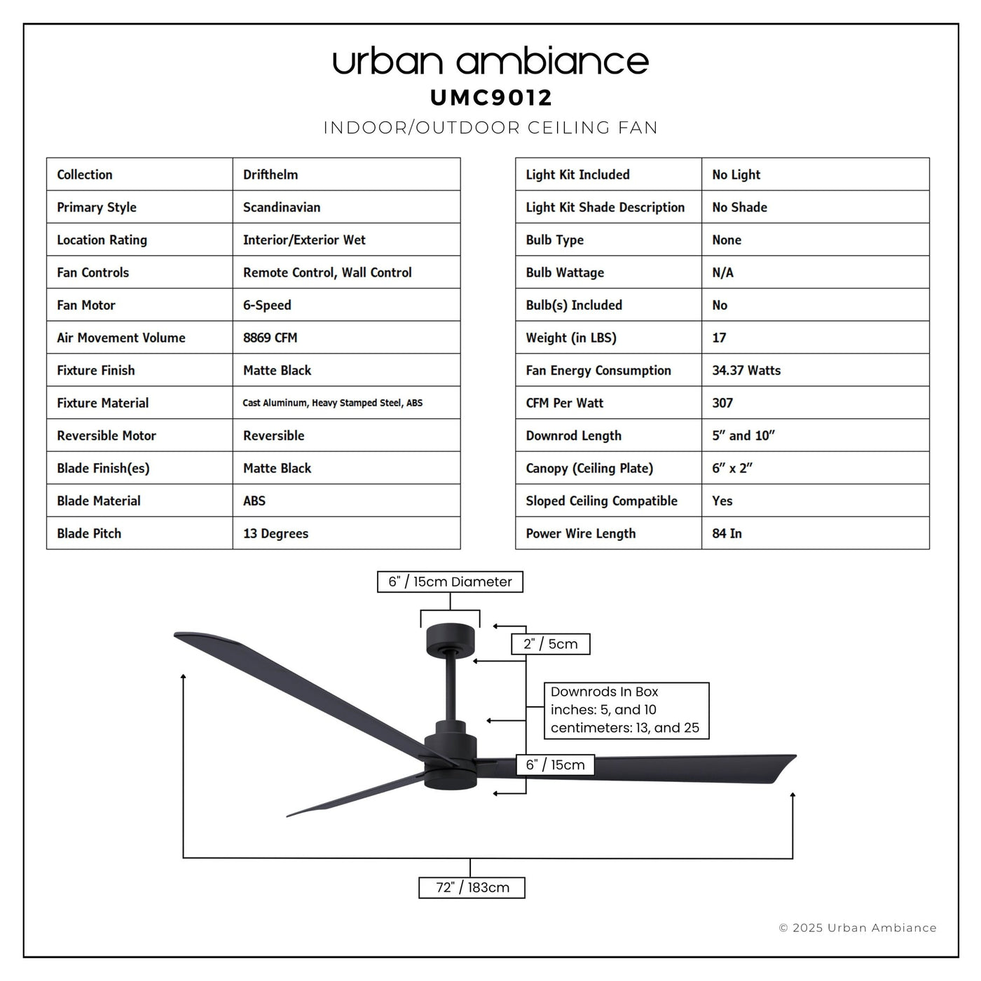 UMC9012 Scandinavian Indoor/Outdoor Ceiling Fan, 8" (Plus Downrod) H x 72" W x 72" D, Matte Black Finish, Drifthelm Collection