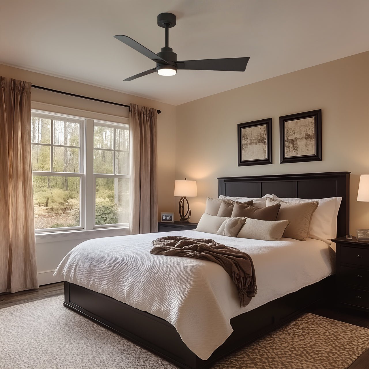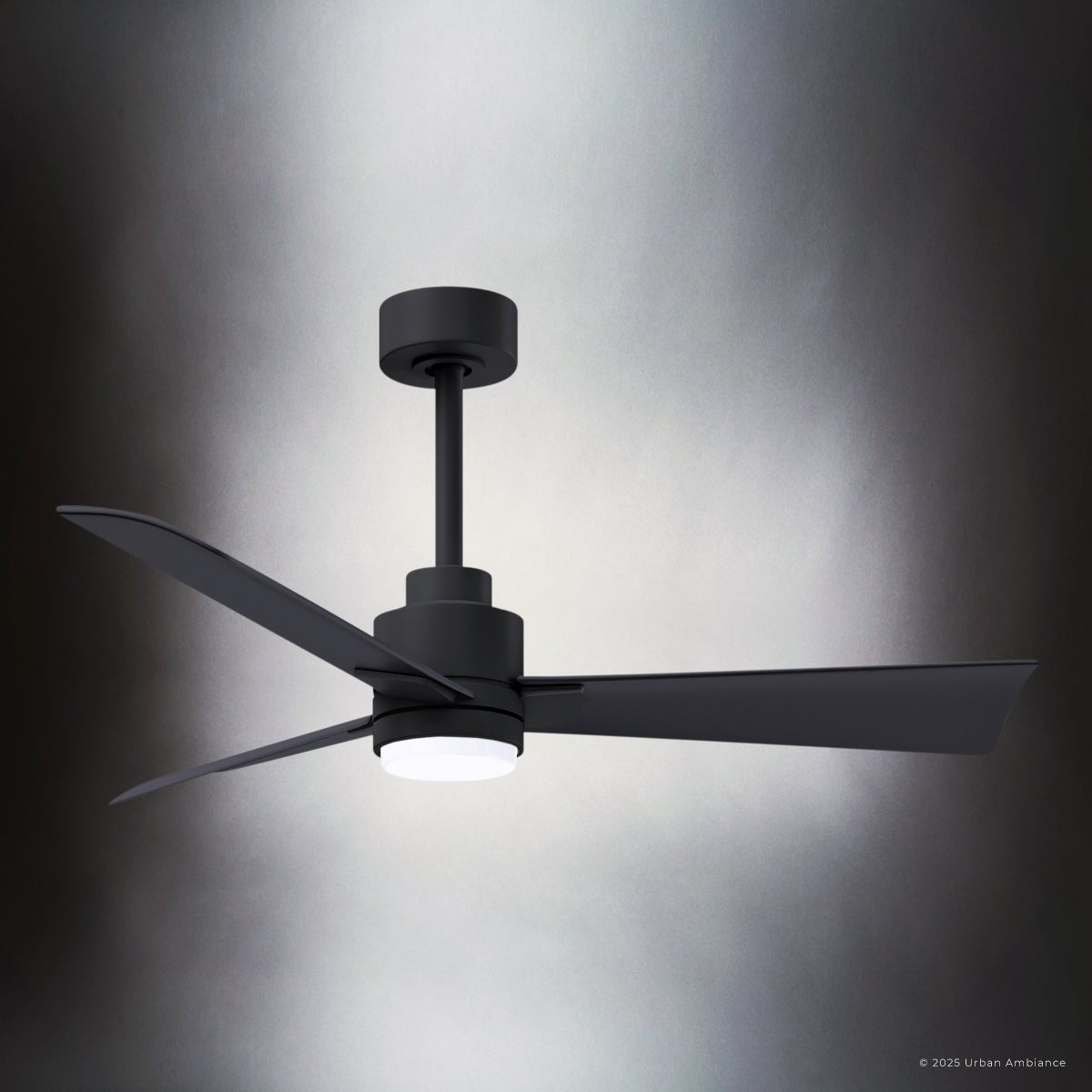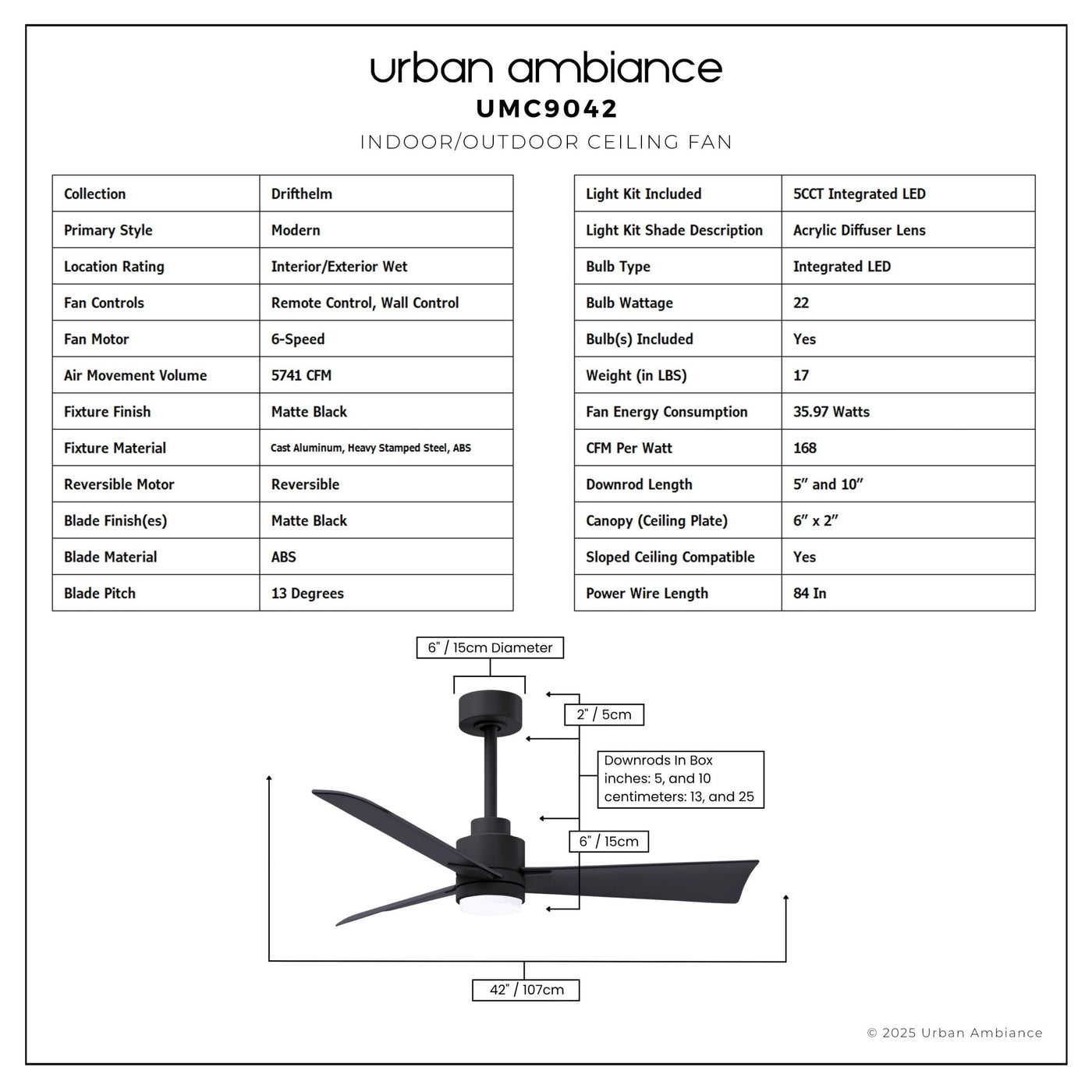 UMC9042 Modern Indoor/Outdoor Ceiling Fan, 8" (Plus Downrod) H x 42" W x 42" D, Matte Black Finish, Drifthelm Collection