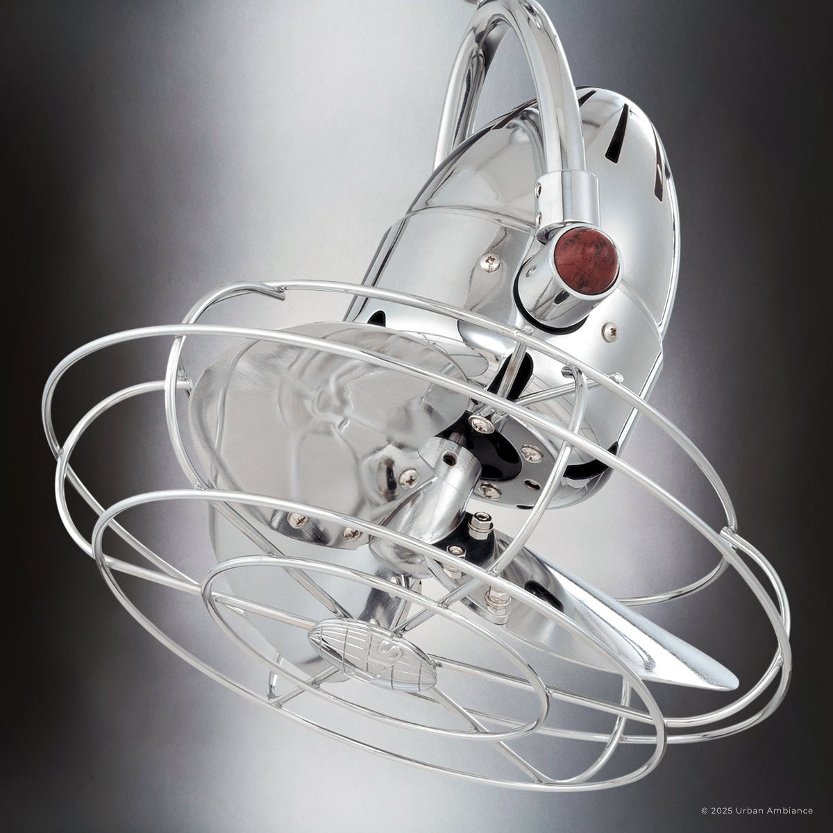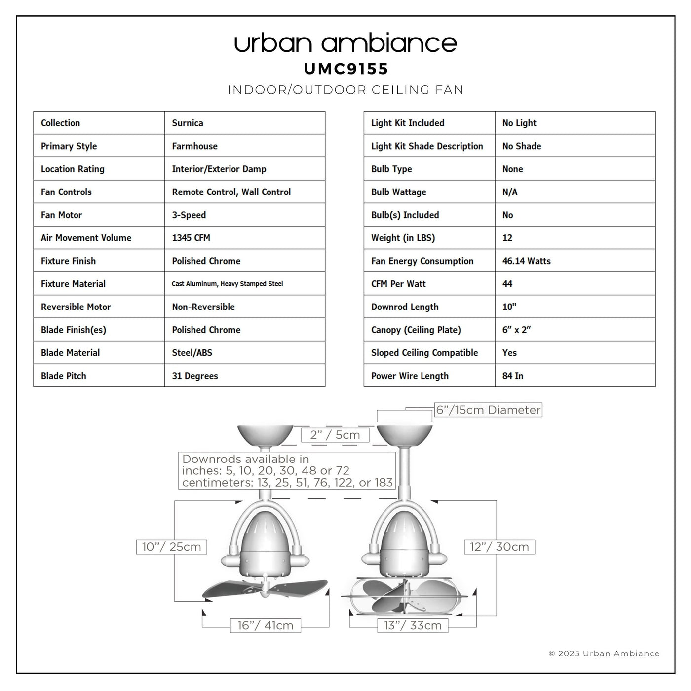 UMC9155 Farmhouse Indoor/Outdoor Ceiling Fan, 14" (Plus Downrod) H x 13" W x 13" D, Polished Chrome Finish, Surnica Collection