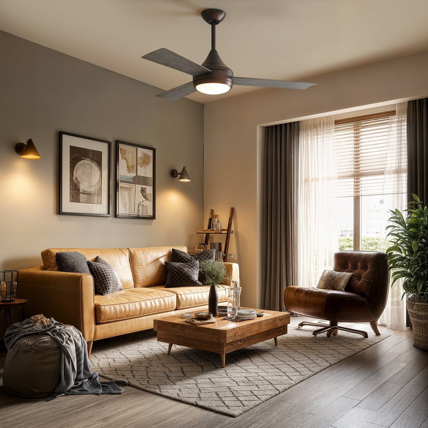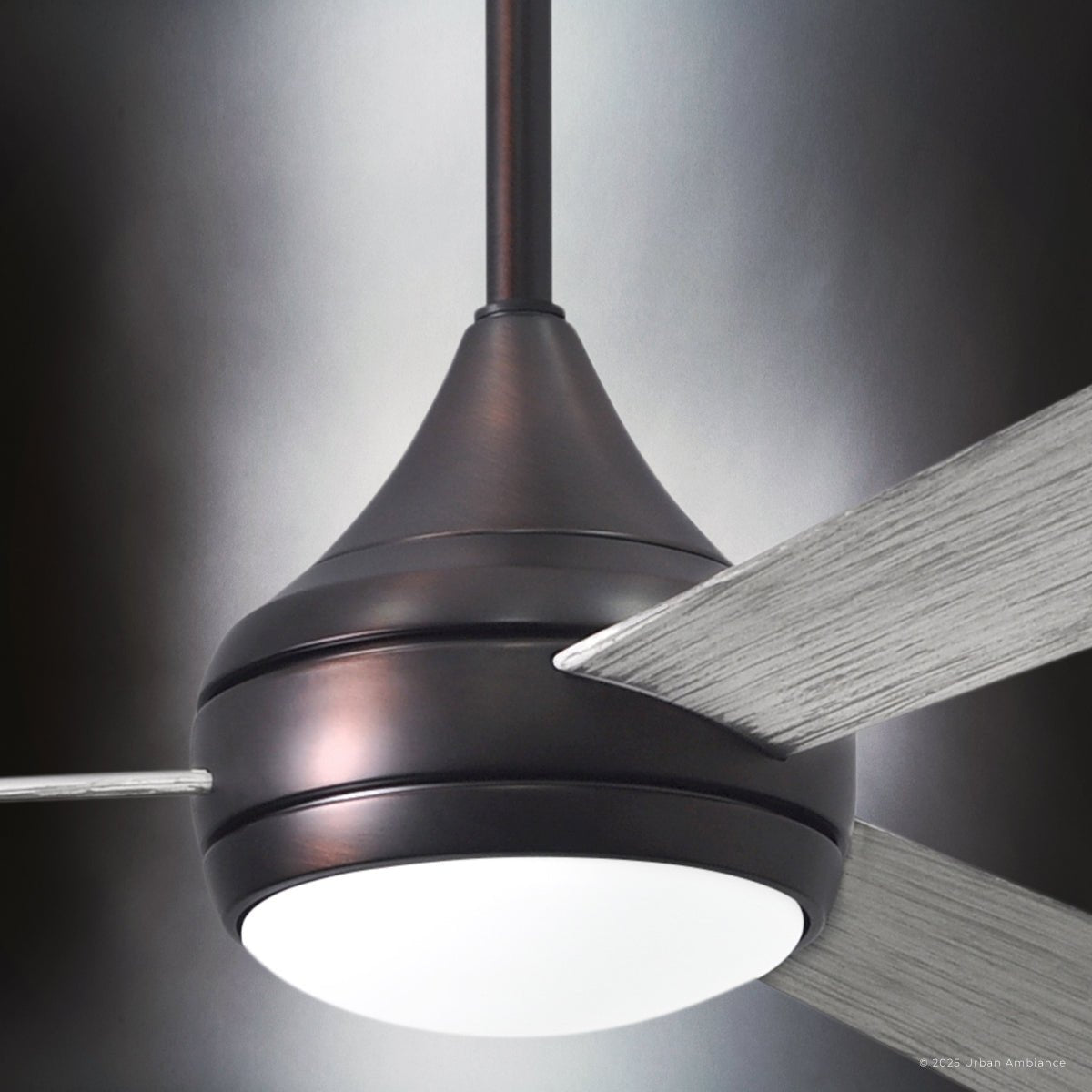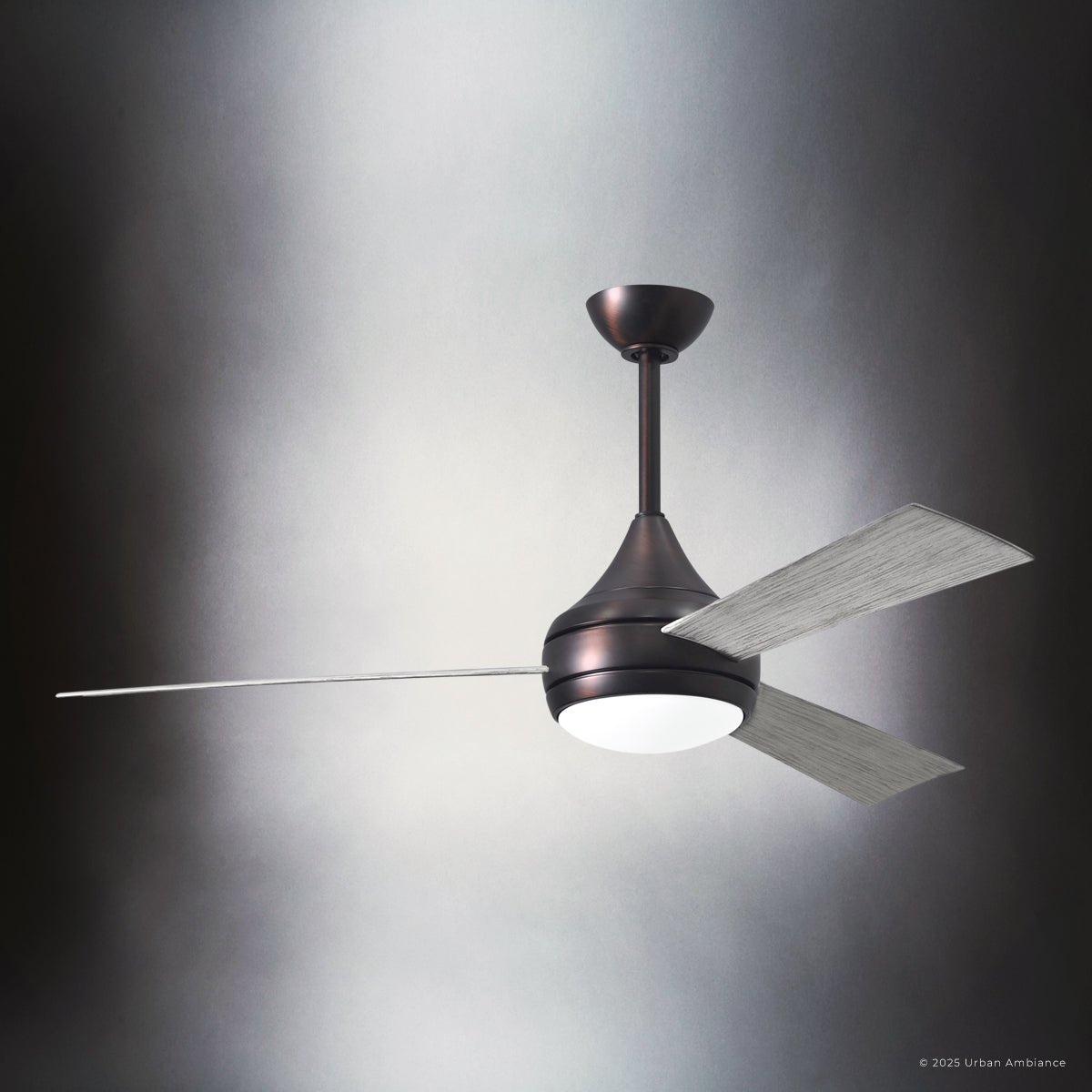 UMC9171 Modern Indoor/Outdoor Ceiling Fan, 9" (Plus Downrod) H x 52" W x 52" D, Brushed Bronze Finish, Asquell Collection