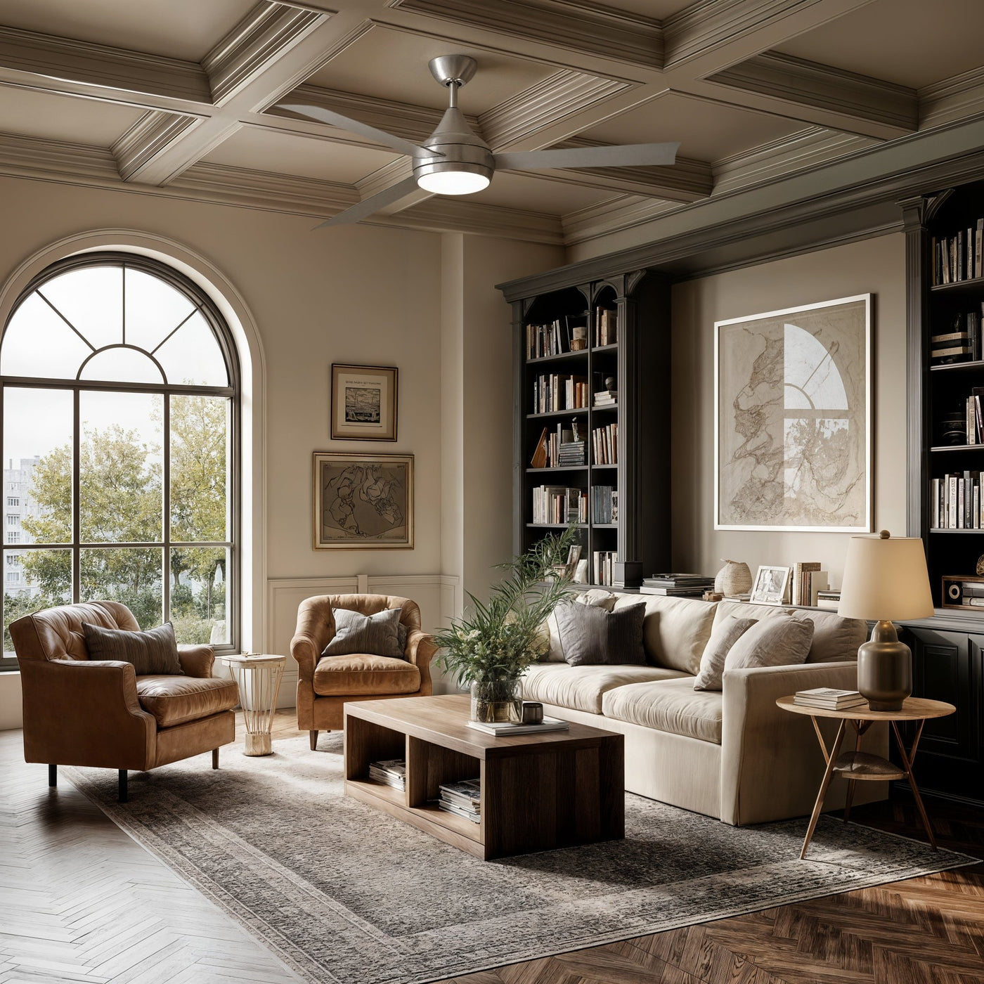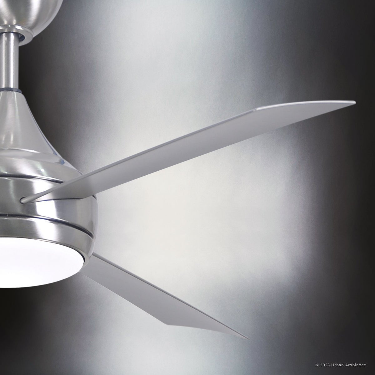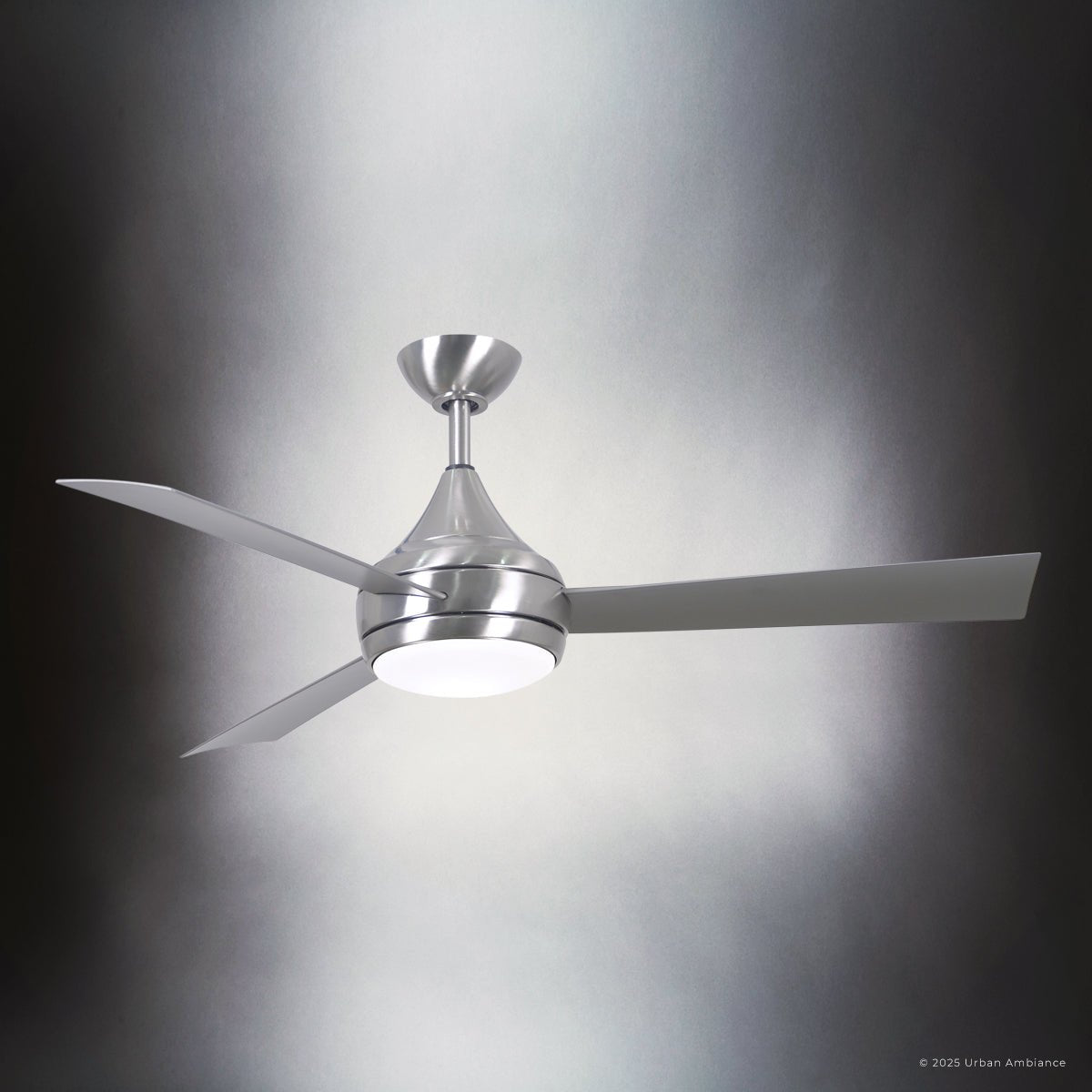 UMC9175 Contemporary Indoor/Outdoor Ceiling Fan, 9" (Plus Downrod) H x 52" W x 52" D, Brushed Stainless Finish, Asquell Collection