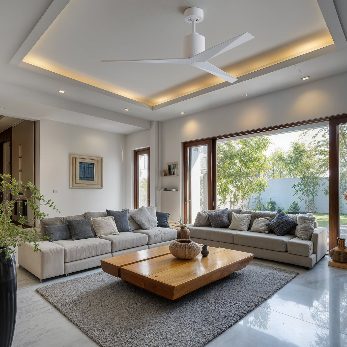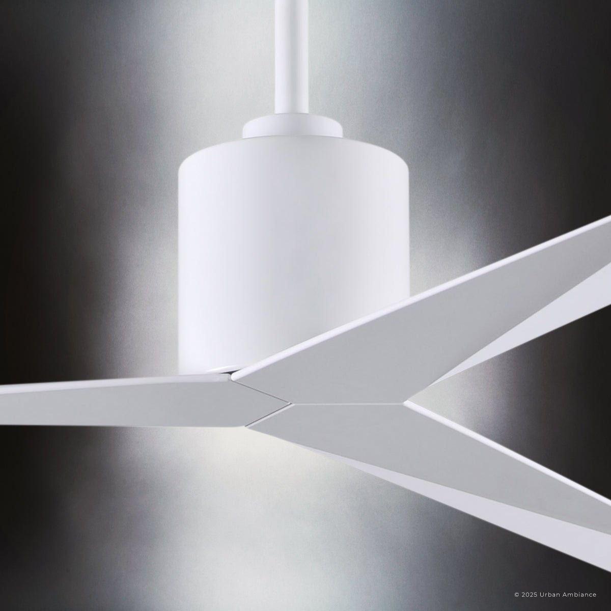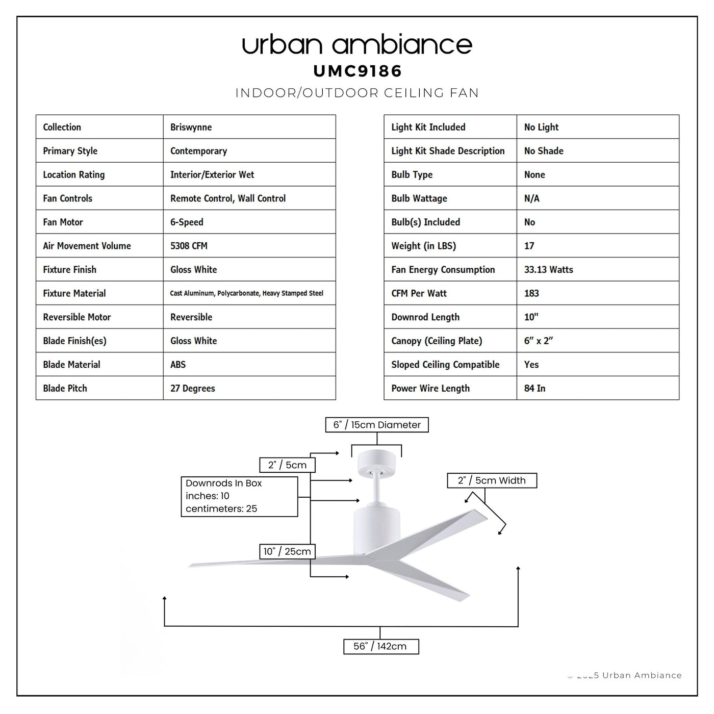 UMC9186 Contemporary Indoor/Outdoor Ceiling Fan, 12" (Plus Downrod) H x 56" W x 56" D, Gloss White Finish, Briswynne Collection