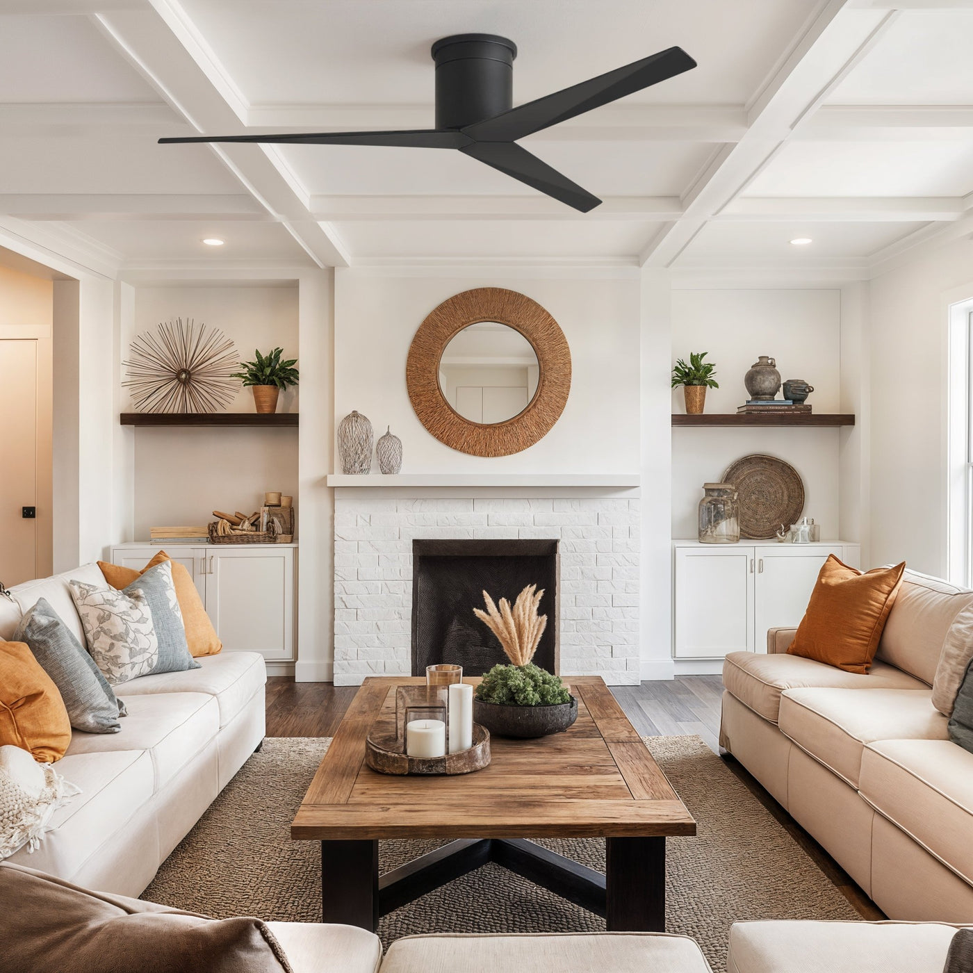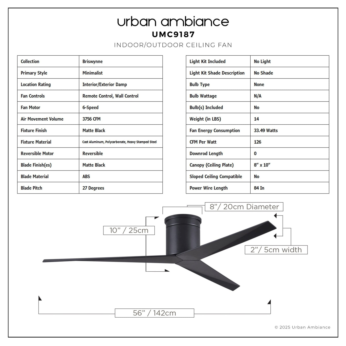 UMC9187 Minimalist Indoor/Outdoor Ceiling Fan, 10" H x 56" W x 56" D, Matte Black Finish, Briswynne Collection