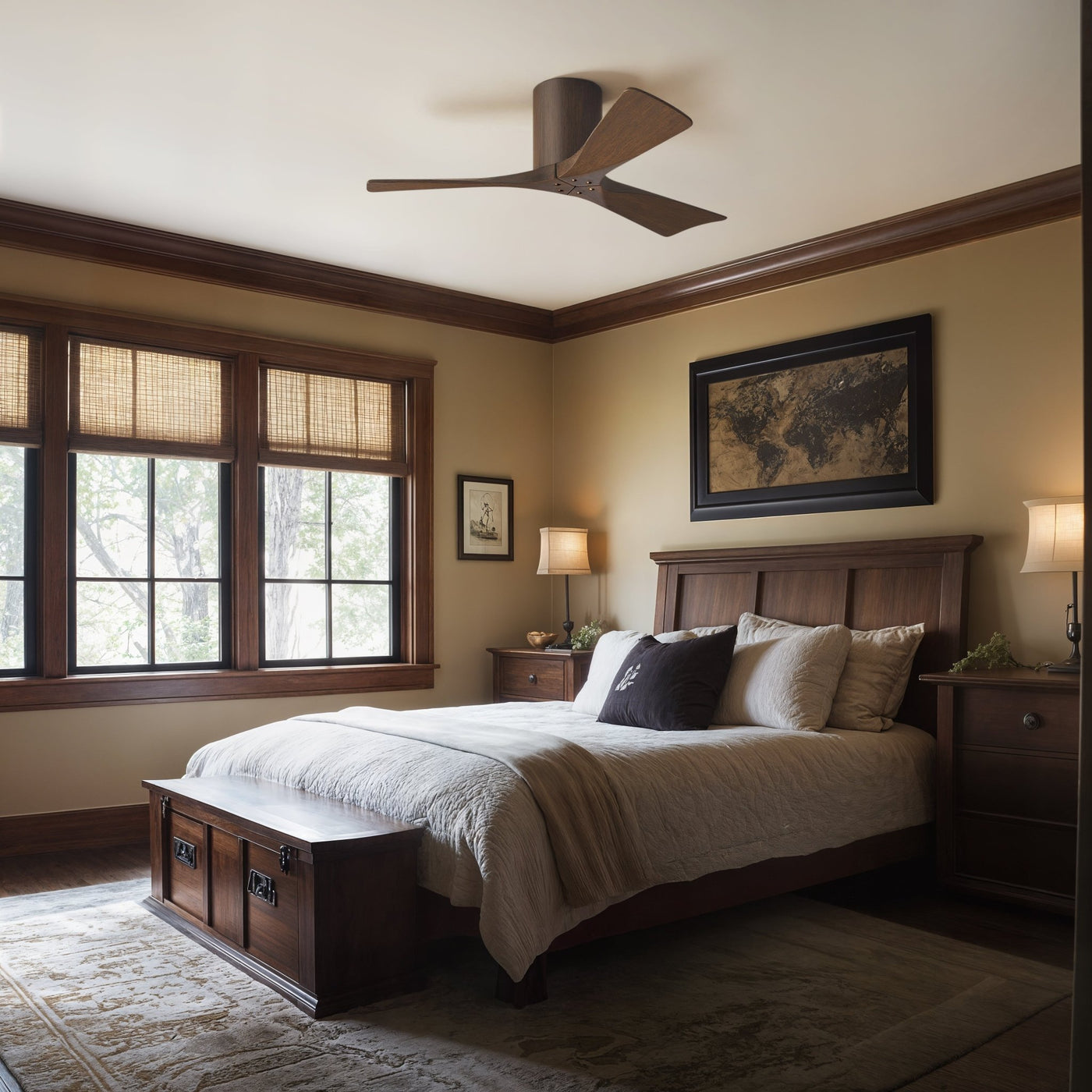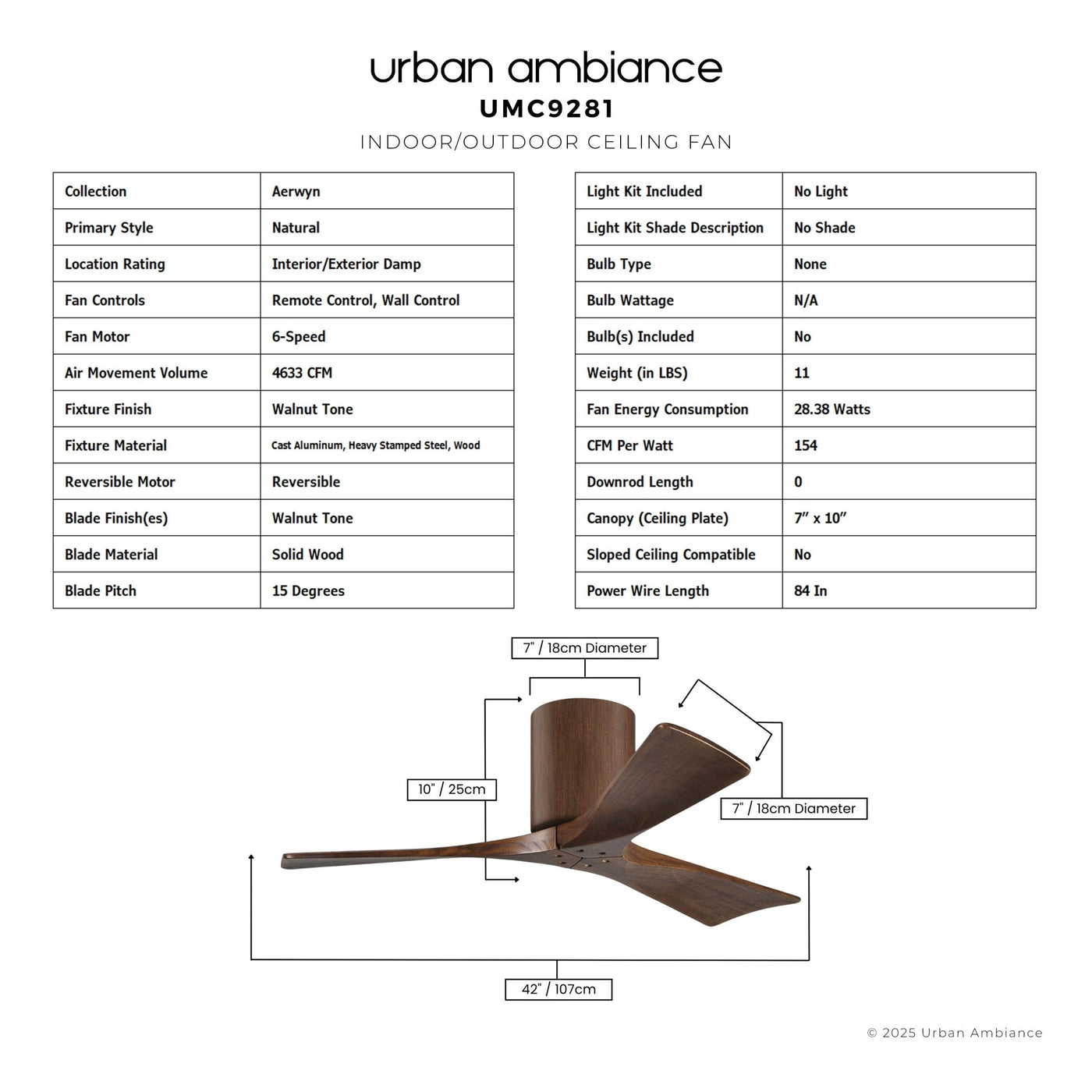 UMC9281 Natural Indoor/Outdoor Ceiling Fan, 10" H x 42" W x 42" D, Walnut Tone Finish, Aerwyn Collection