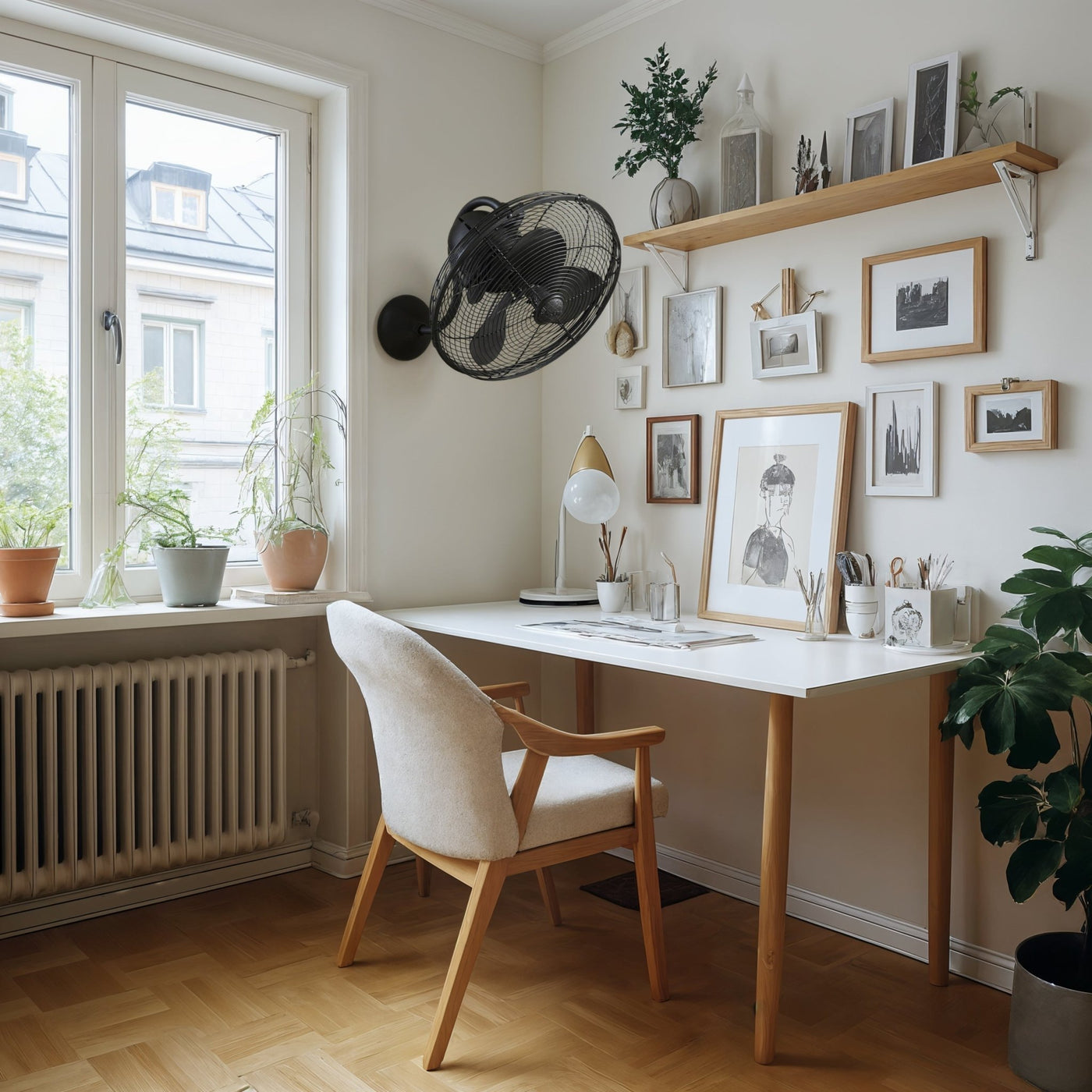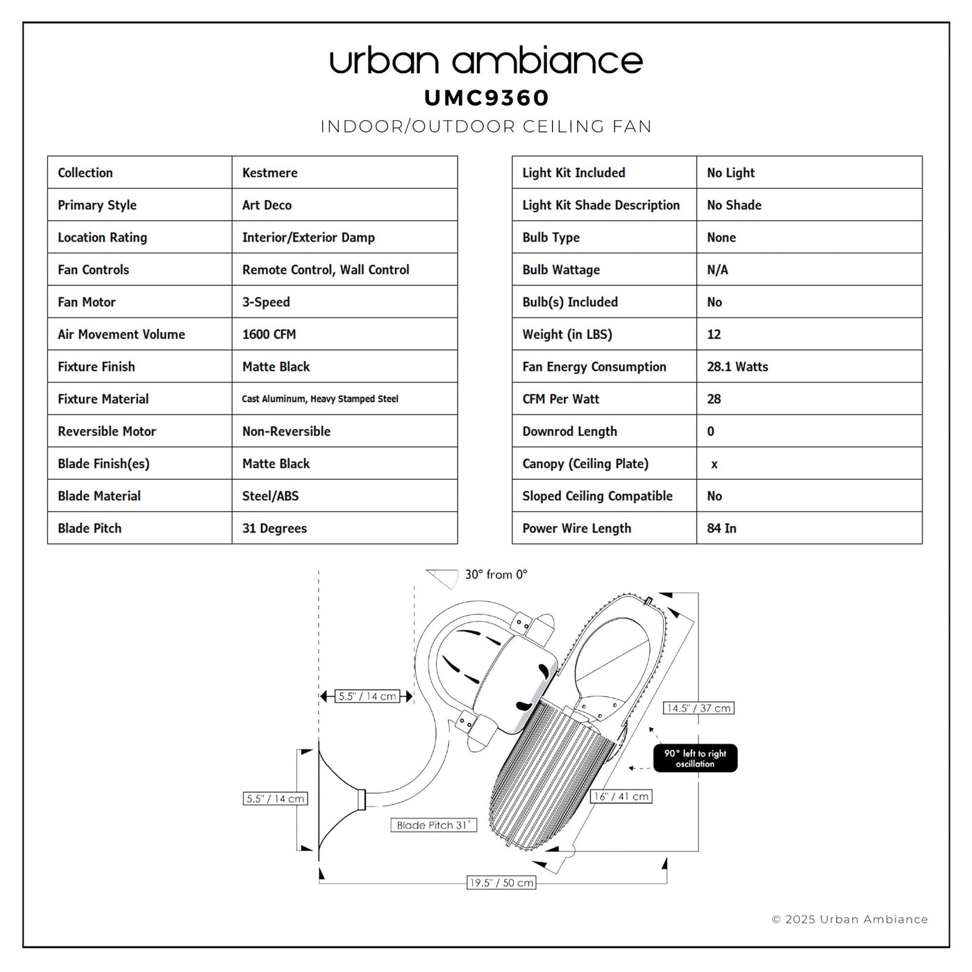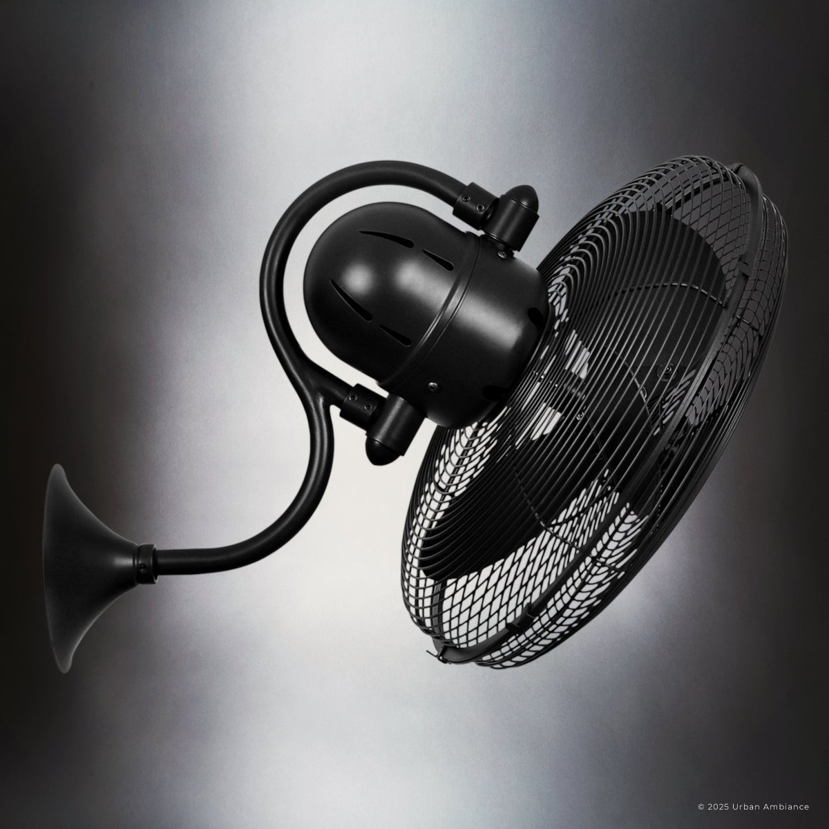 UMC9360 Art Deco Indoor/Outdoor Oscillating Wall Fan, 14.5 H x 16" W x 16" D, Matte Black Finish, Kestmere Collection