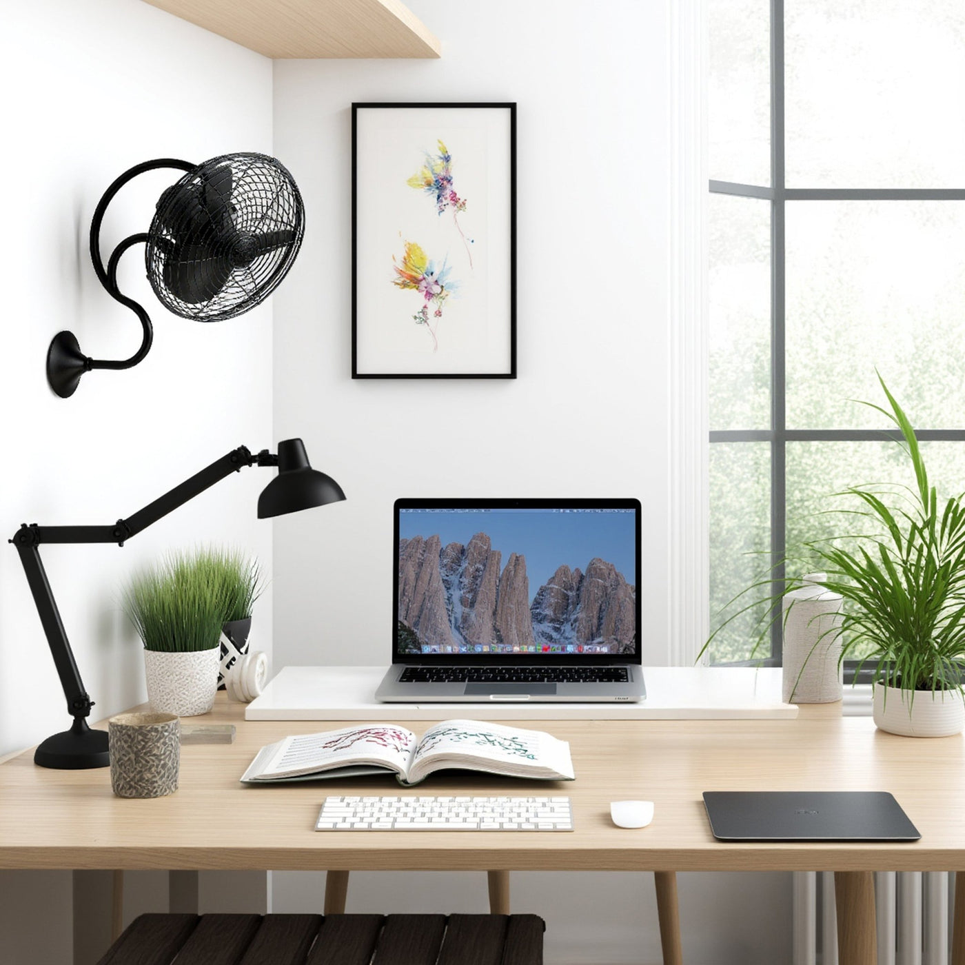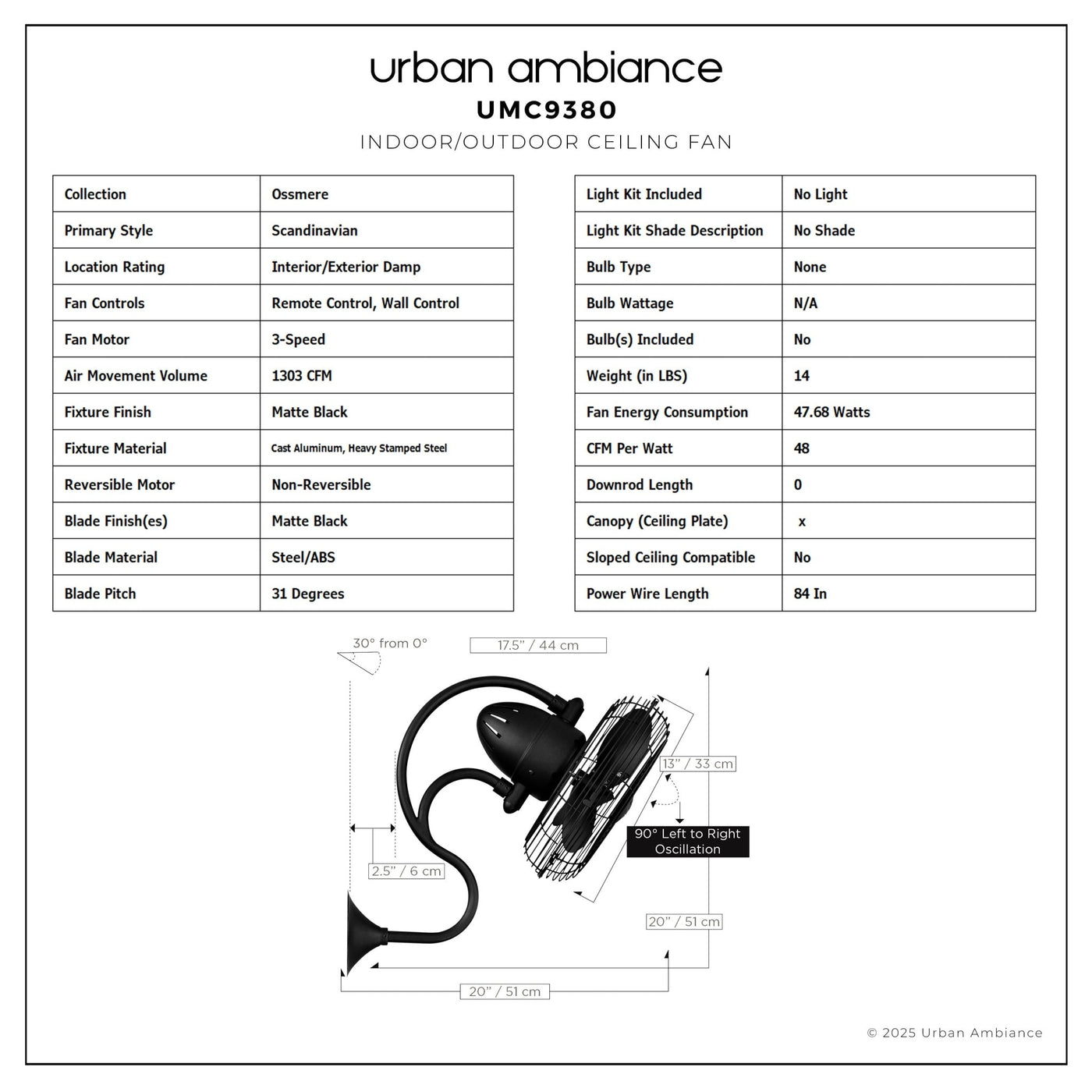 UMC9380 Scandinavian Indoor/Outdoor Oscillating Wall Fan, 20" H x 13" W x 13" D, Matte Black Finish, Ossmere Collection