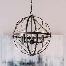 UHP2327 Luxe Industrial Chandelier, 24-3/8"H x 22"W, Olde Bronze Finish, Arezzo Collection