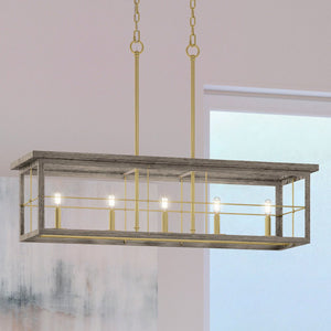 UHP3954 Modern Farmhouse Chandelier 11''H x 40''W, Distressed Brass Finish, Ballina Collection