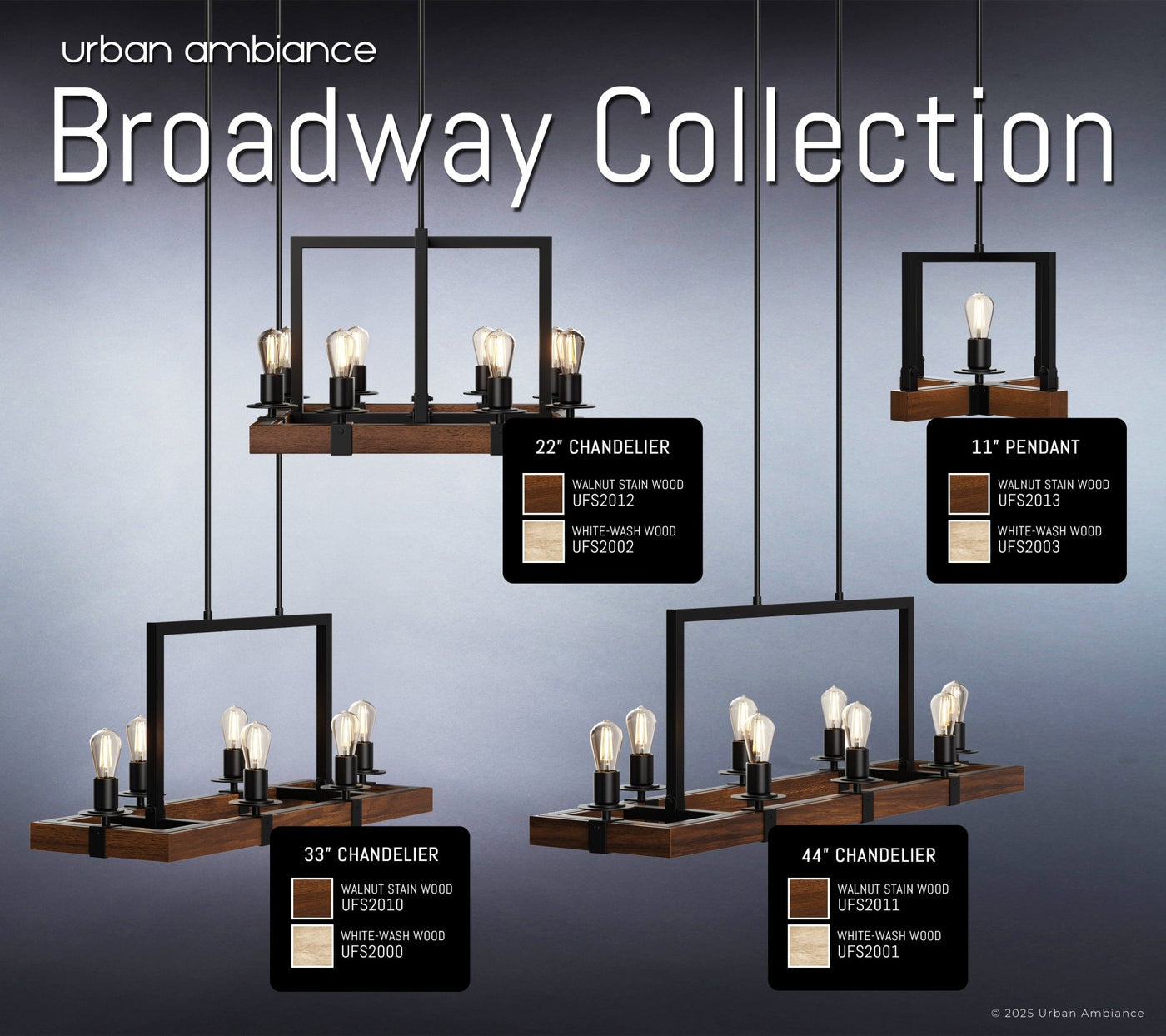 UFS2002 Modern Farmhouse Chandelier, 15''H x 22''W, Matte Black & White Ash Finish, Broadway Collection
