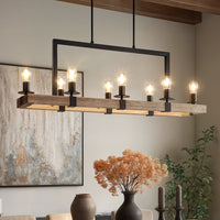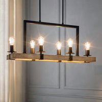 UFS2011 Modern Farmhouse Chandelier, 15''H x 44''W, Matte Black & Rich Walnut Finish, Broadway Collection