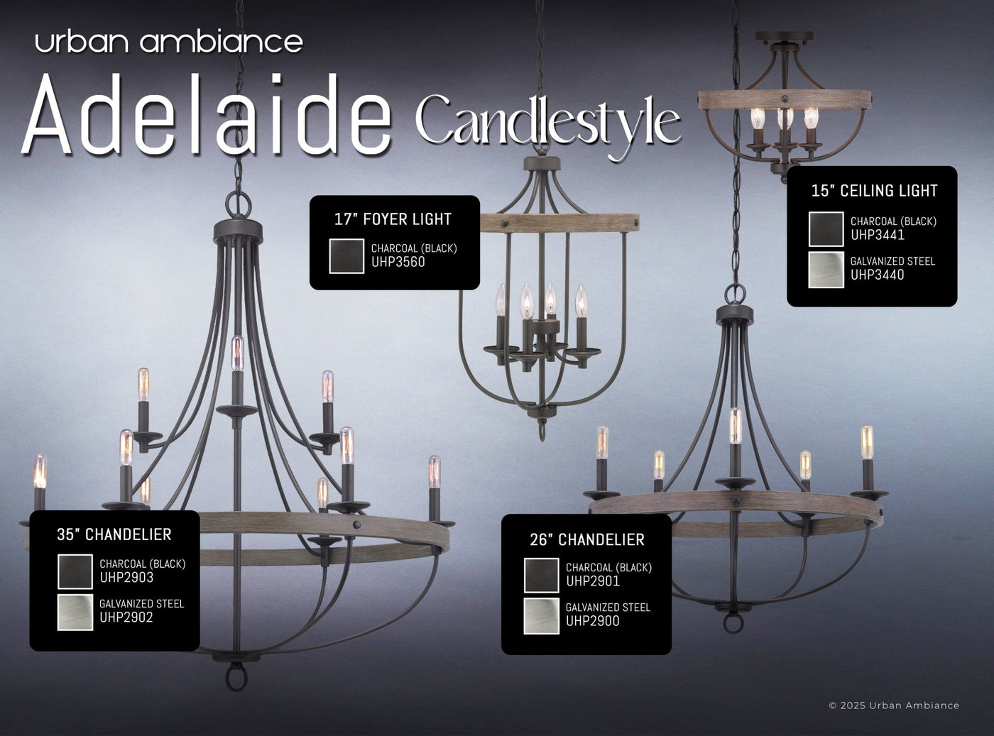 UHP2900 Farmhouse Farmhouse Chandelier, 30" x 26", Galvanized Steel Finish, Adelaide Collection