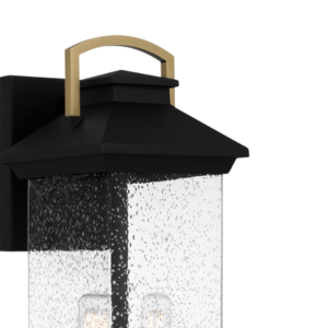 The Chatswood collection of outdoor wall sconces is designed to adorn your home’s exterior with a blend of classic lantern elements and modern accents. The fixtures feature a rectangular silhouette finished in earth black and complemented in gold accents for an extra hint of modern style and luxury. The glass lantern comes bookended by an earth black square base and a tapered, pagoda-style top, capped with a contrasting metallic handle which comes in a gold finish.