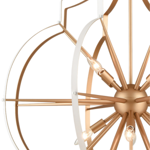 The far-reaching design punctuating the fixtures centers on an animated starburst architecture stunningly housed within a unique angular floral framework. Made of steel, the gleaming construction is sure to please. A lean frame drops from the mounting position anchored by a chain and ruptures at the middle into a charming starburst before re-converging at the base. Nestled in the sharp star arms are protruding candle handlers facing all directions without a shade. Shop all of the options available in the Claremont Collection below.
