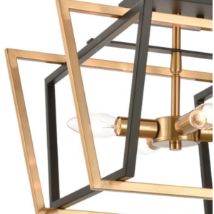 From the point of suspension, the sleek trapezoid frames smartly hang on both single/double frames as well as resilient chains. At the base of the central steel frame spreads out creatively layered candelabras. The contrasting finish of the shade less outer frames produces a multi-colored lighting effect to enliven the space. Shop all of the options available in the Clayton Collection below.