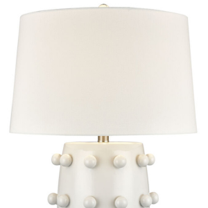 The Cold Spring Collection table lamp brings playful sophistication to any interior, effortlessly merging artistic charm with contemporary elegance. Its smooth ceramic body is adorned with raised, symmetrical spheres, creating a dynamic texture that adds depth and visual interest. The crisp white finish enhances its modern appeal, making it a versatile statement piece that complements a range of décor styles.