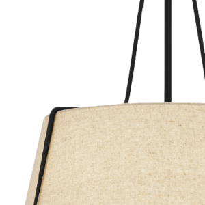 The Dalton pendant light, with its modern and stylish design, features several distinctive elements that contribute to its minimalist aesthetic. The light features a large, conical fabric shade in a light beige color, providing a soft, diffused light. The neutral color of the shade allows it to blend seamlessly with various interior decor styles.
