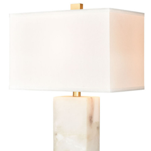 The Fairfield Collection table lamp radiates refined elegance with its sleek geometric design and luxurious materials. Crafted from natural alabaster, its solid rectangular base highlights delicate veining, making each piece uniquely beautiful. The stone’s soft translucency adds depth and sophistication, creating a subtle yet striking focal point in any space.