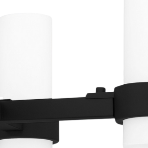 This chandelier is designed to create a soft and diffused illumination, thanks to the frosted glass cylinders. The lights are evenly spaced along the horizontal frame, ensuring a balanced lighting distribution. This design detail, coupled with the bold contrasting look of the matte black frame and opal etched glass shades, makes the Frankfurt chandelier a standout piece.