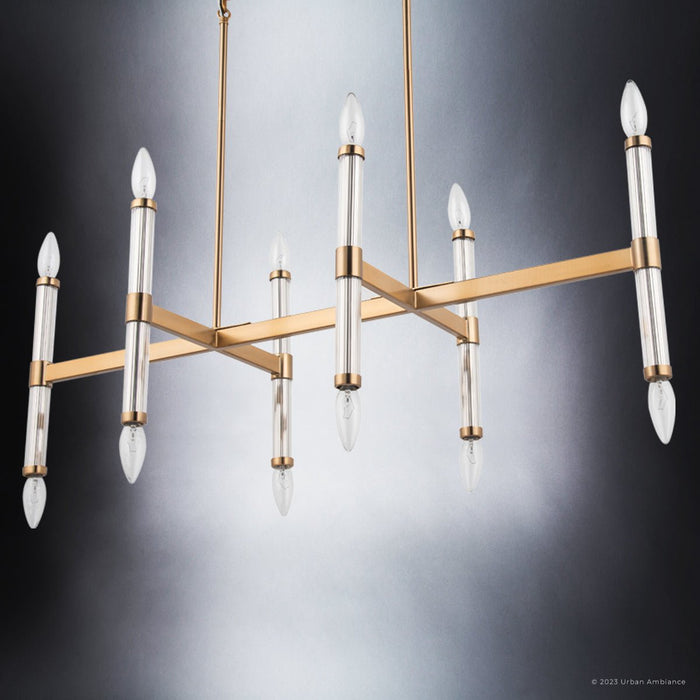 UHP4994 Eclectic Indoor Chandelier, 9-1/2''H x 16"W x 50-1/2''D, Gilded Silver Finish, Hervey Collection
