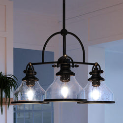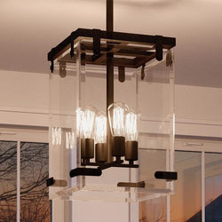 UQL3341 Utilitarian Chandelier, 20"H x 16"W, Dark Bronze Finish, Clearwater Collection