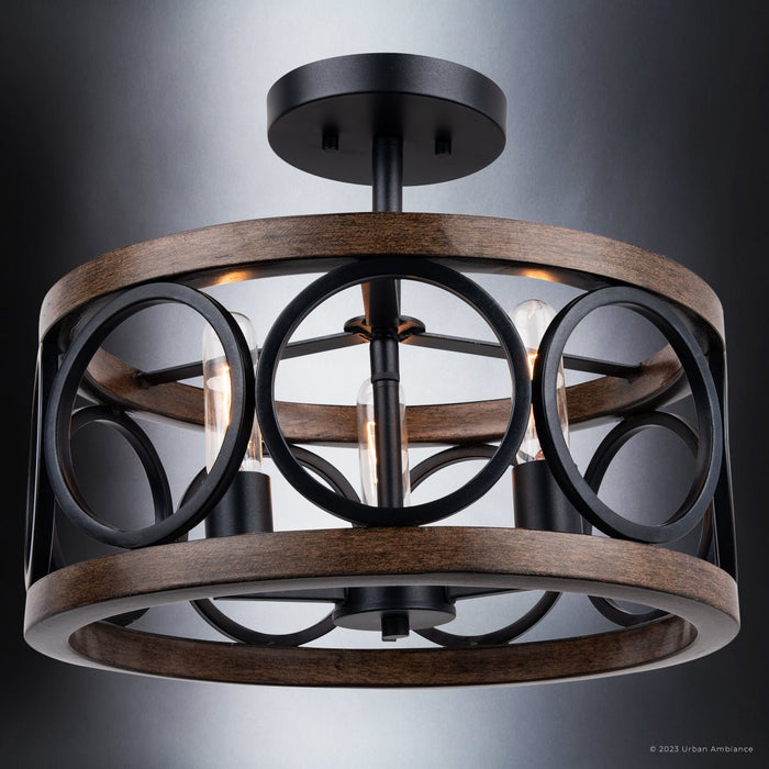 UQL5872 Luxe Industrial Indoor Ceiling Light, 16.75''H x 15.75''W x 15.75''D, Matte Black Finish, Wells Collection