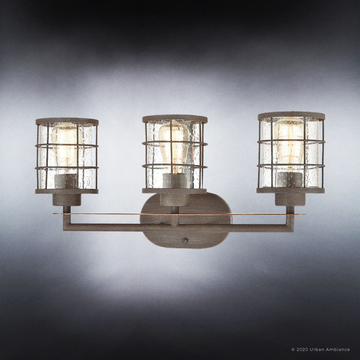 UQL3462 Luxe Industrial Bath Vanity Light, 8.75"H x 17"W, Rustic Polished Nickel Finish, Davenport Collection