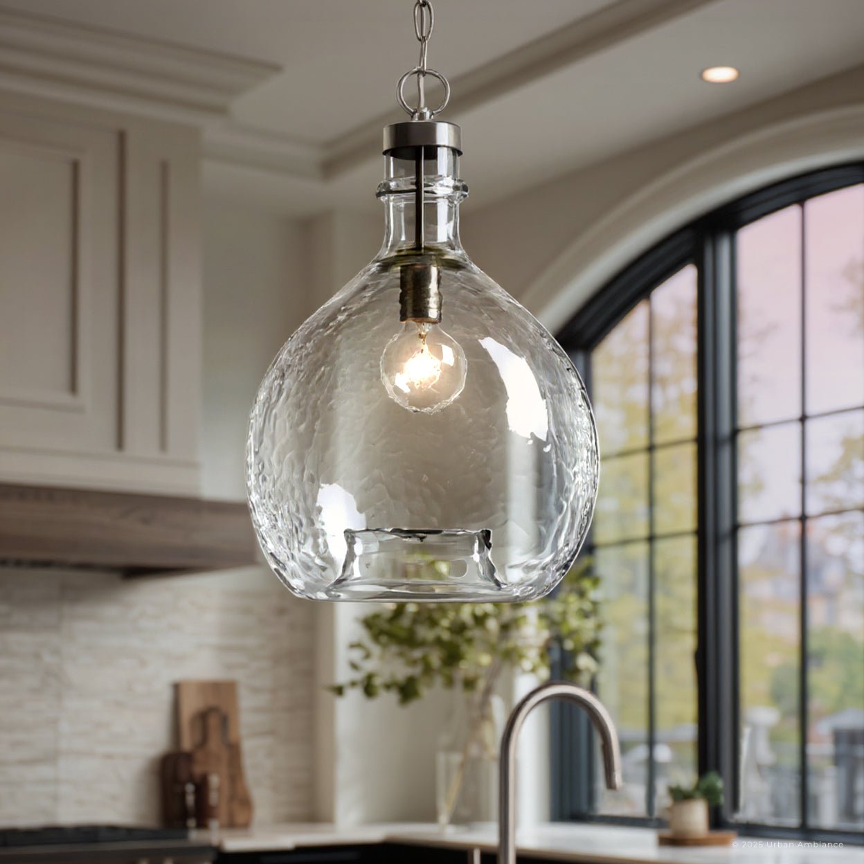 UHP2772 Modern Farmhouse Pendant, 20-3/8"H x 13"W, Brushed Nickel Finish, Hobart Collection
