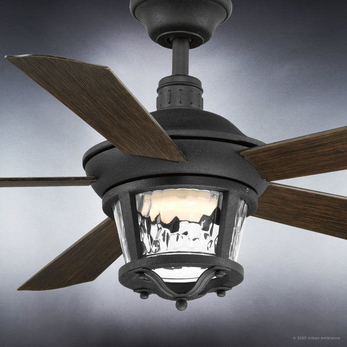 UHP9181 Modern Farmhouse Indoor or Outdoor Ceiling Fan, 19.5"H x 52"W, Black Iron, Catalina Collection