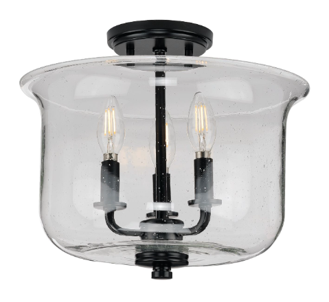 UHP3731 French Rustic Ceiling Light, 11.875"H x 13.75"W, Midnight Black Finish, Missoula Collection