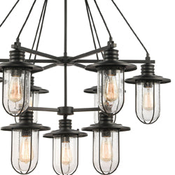 UQL3381 Utilitarian Chandelier, 21.55"H x 38"W, Dark Bronze Finish, Clearwater Collection