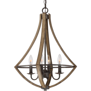 UQL2962 Farmhouse Chandelier, 24"H x 18.25"W, Wood Grain Metal with Antique Black Finish, Swansea Collection