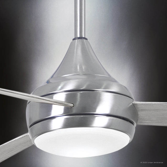 UMC9178 Modern Indoor/Outdoor Ceiling Fan, 9" (Plus Downrod) H x 52" W x 52" D, Gloss White Finish, Asquell Collection