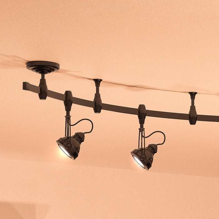 Urban Loft design style track lights epitomize the practical, industrial-inspired essence of repurposed city spaces. Often crafted from sleek metals like brushed nickel or matte black, these lighting systems are modular and highly adjustable. Their exposed tracks, visible hardware, and directional spotlights or pendants encapsulate a functional, workshop-like aesthetic, reminiscent of old factories and warehouses.
