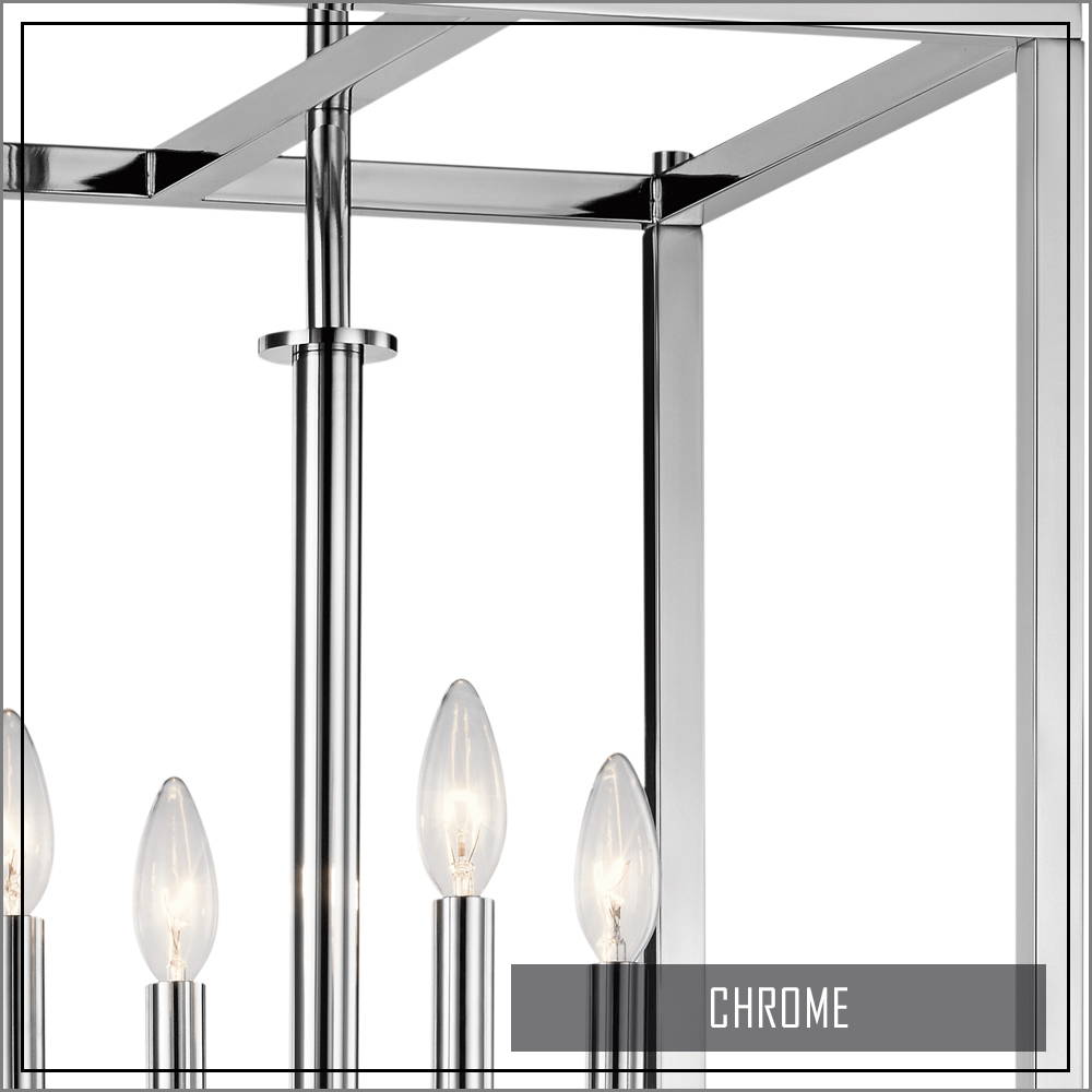 Chrome finish radiates sleek elegance with its high-gloss mirror-like surface, making it a staple in modern and contemporary lighting design. Known for its polished clarity and cool undertone, chrome adds a clean, reflective quality that enhances brightness and amplifies surrounding colors and materials. It pairs effortlessly with glass, acrylic, or high-contrast elements like black or white, creating striking visual appeal. Whether used in minimalist settings or bold, high-glam interiors, chrome delivers a timeless, upscale look that brings a sense of clarity, precision, and modern flair to any space.