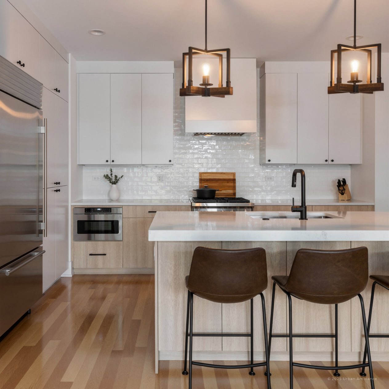 UFS2013 Modern Farmhouse Pendant, 11''H x 11''W, Matte Black & Rich Walnut Finish, Broadway Collection