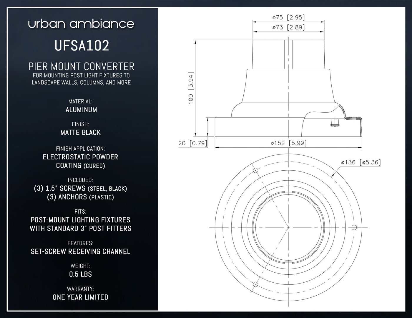 UFSA102 Contemporary Outdoor Pier Mount, 4"H x 6"W Round, Matte Black Finish, Post Light Accessory