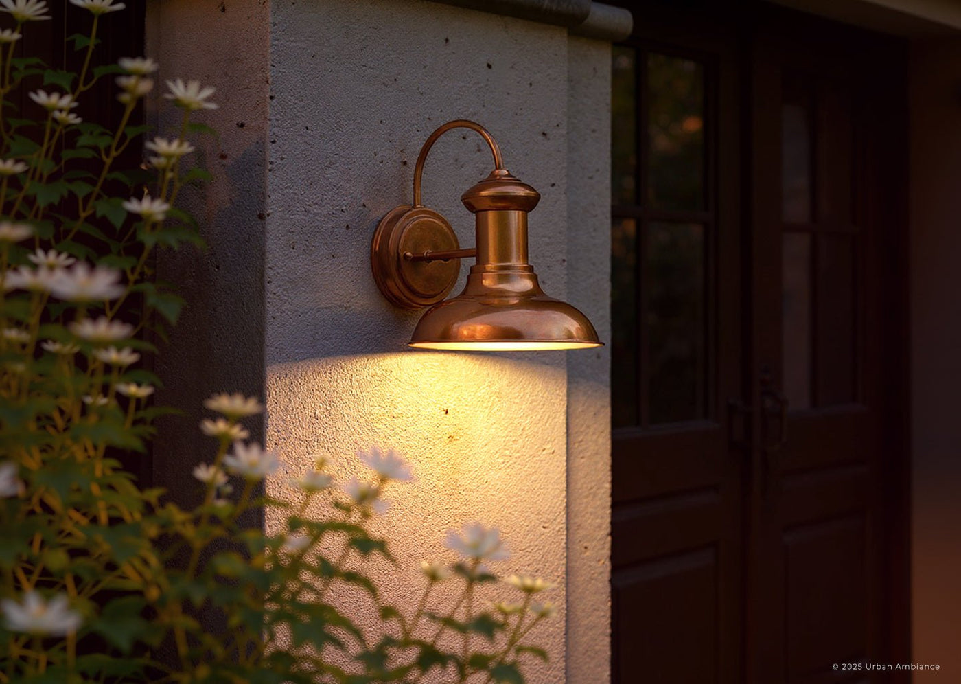 UHP1020 Luxe Industrial Outdoor Wall Light, 10"H x 8.125"W, Solid Copper Finish, Palermo Collection
