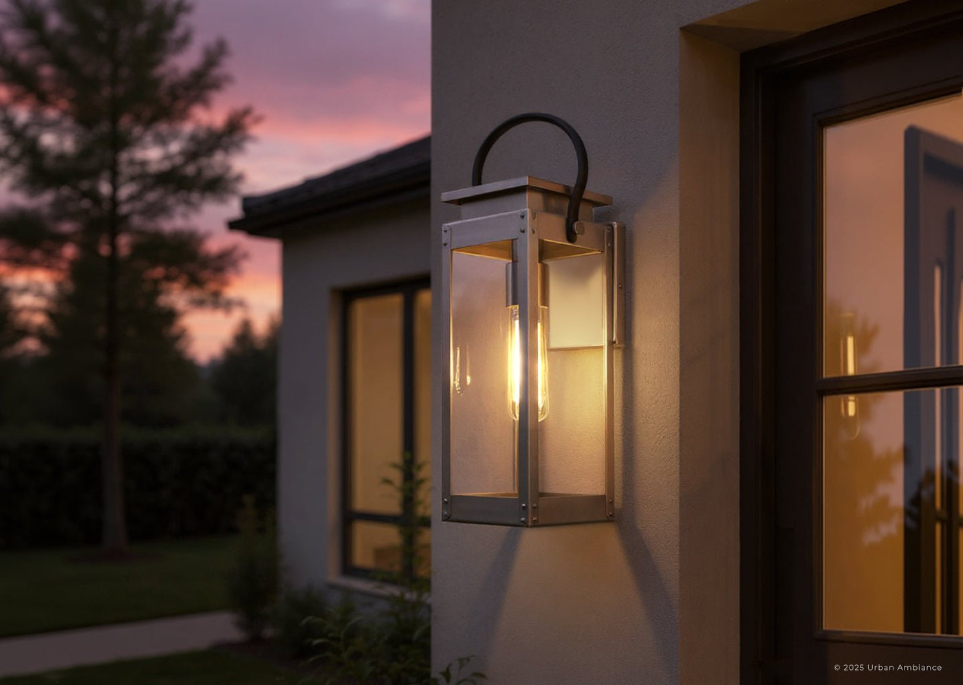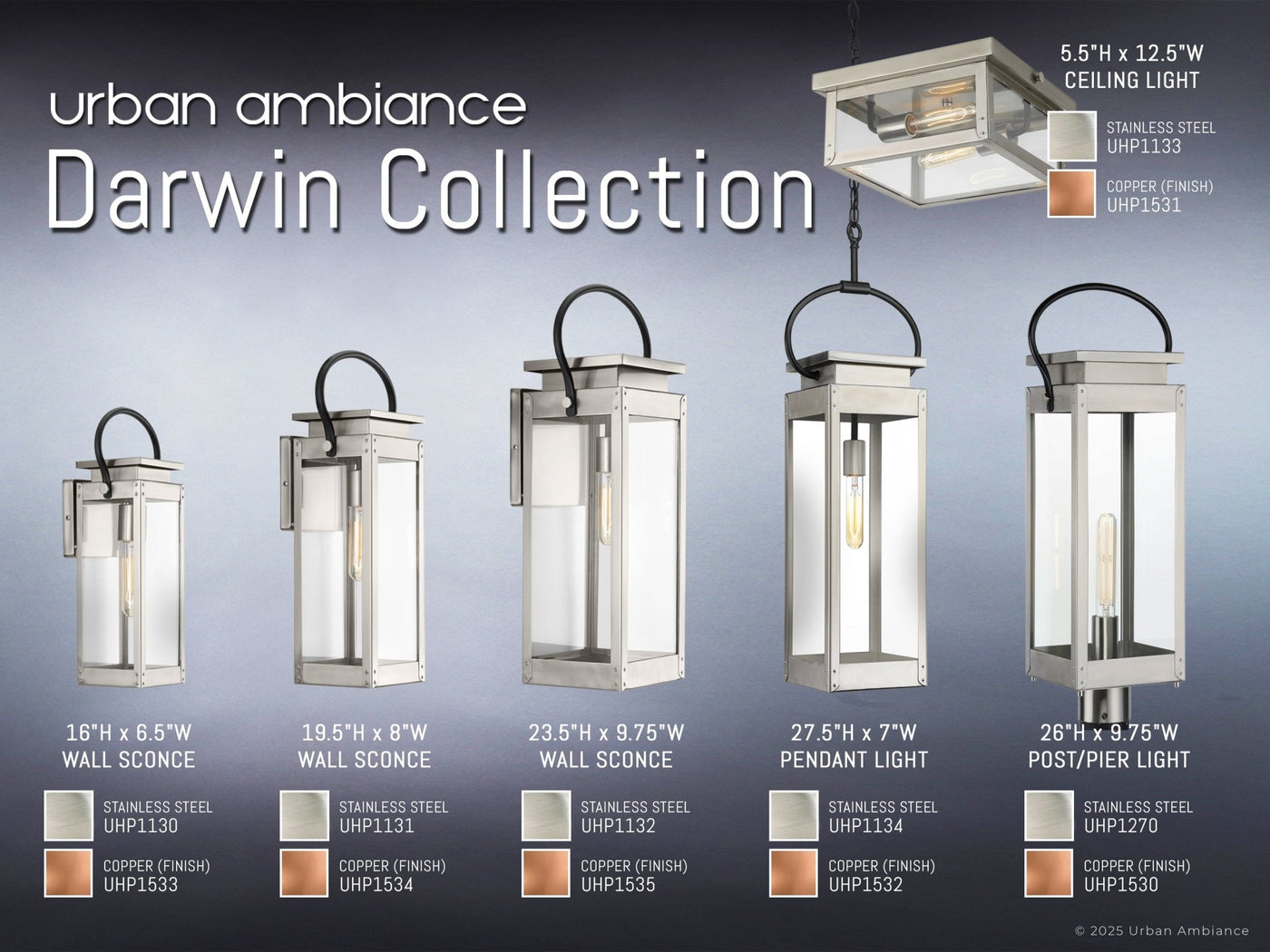 UHP1131 Modern Farmhouse Outdoor Wall Light, 19-3/8"H x 7-7/8"W, Stainless Steel Finish, Darwin Collection