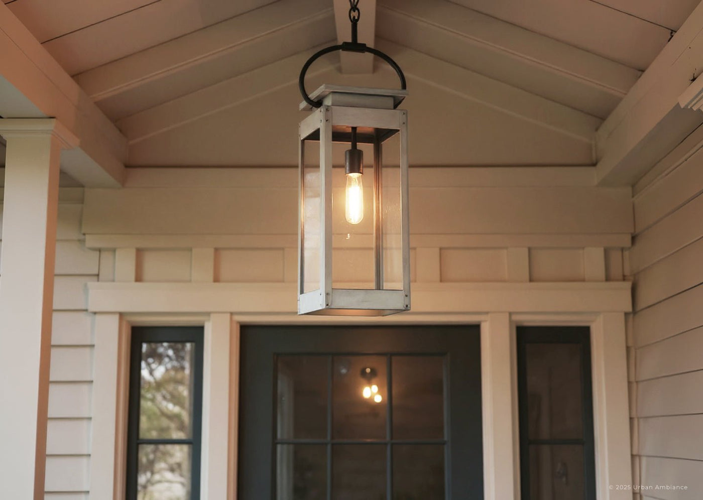 UHP1134 Modern Farmhouse Outdoor Pendant, 27-3/8"H x 7"W, Stainless Steel Finish, Darwin Collection