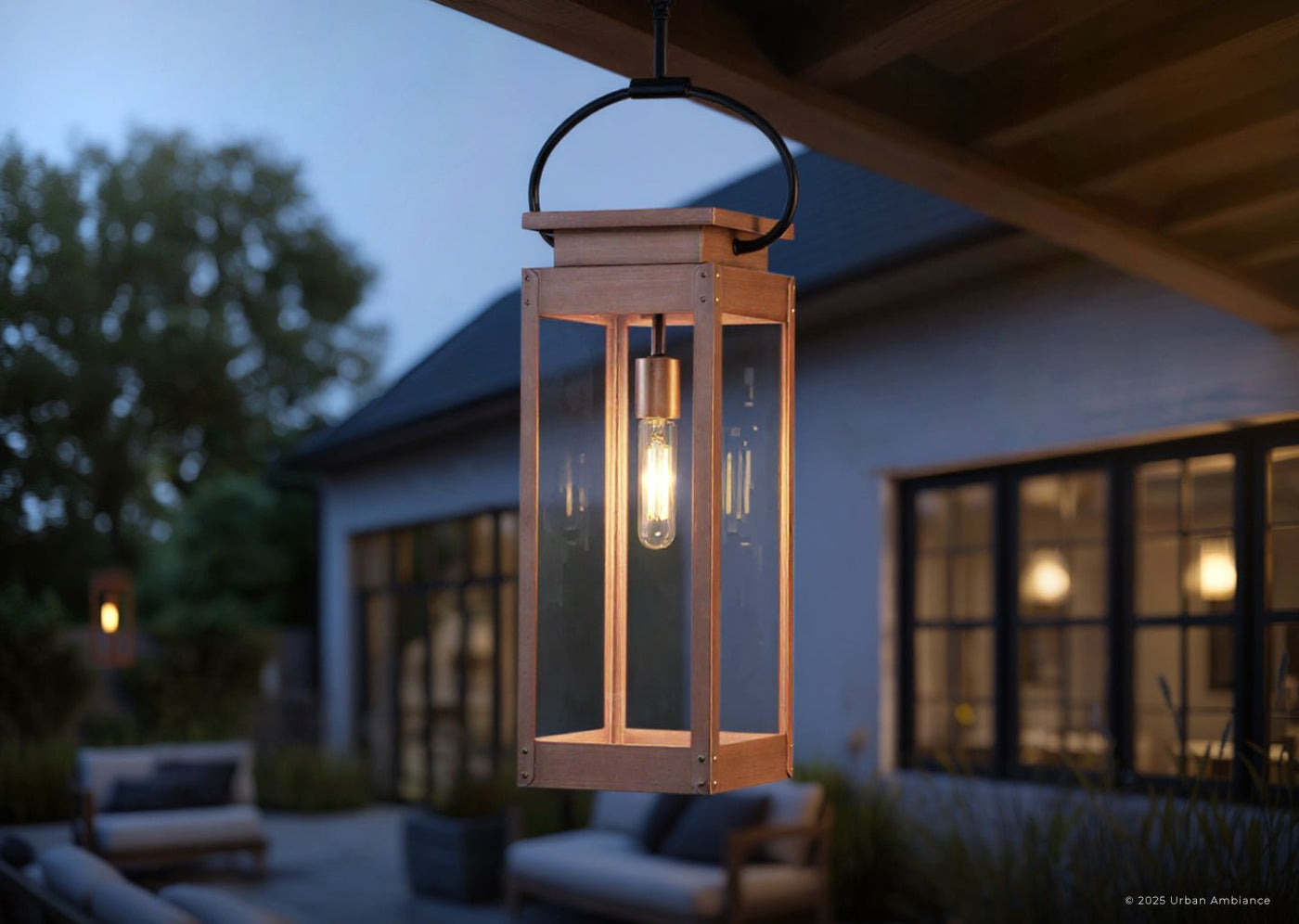 UHP1532 Modern Farmhouse Outdoor Pendant, 27-3/8''H x 7"W x 7''D, Antique Copper Finish, Darwin Collection