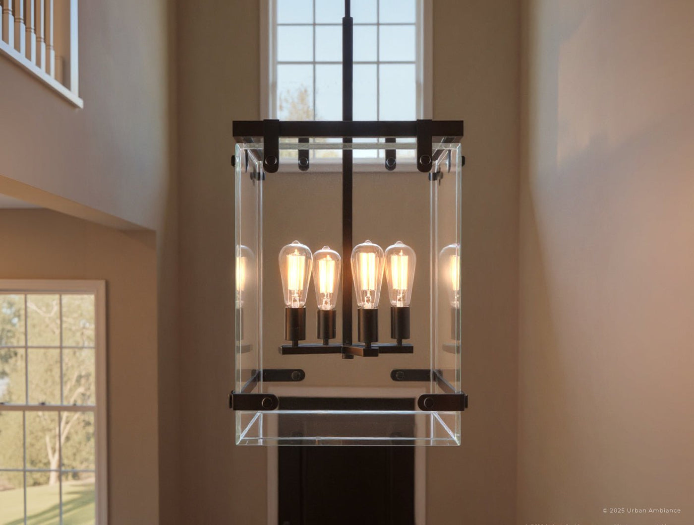 UHP2442 Modern Farmhouse Modern Chandelier, 28-3/8"H x 14-3/4"W SQ, Olde Bronze Finish, Bristol Collection