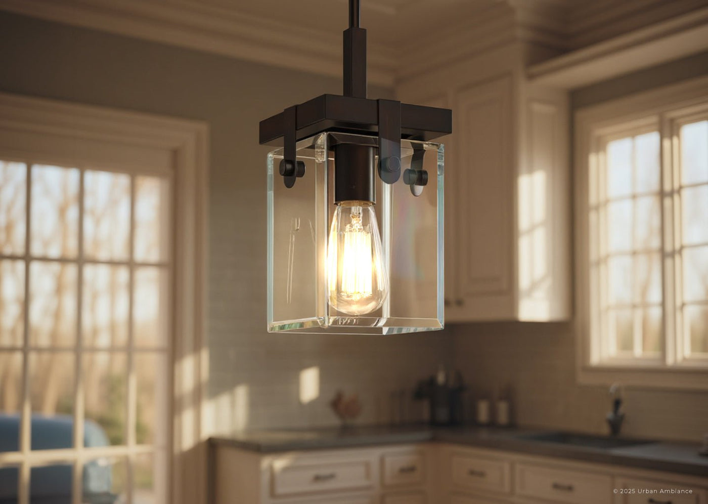 UHP2446 Modern Farmhouse Modern Pendant, 11-7/8"H x 6-1/2"W SQ, Olde Bronze Finish, Bristol Collection