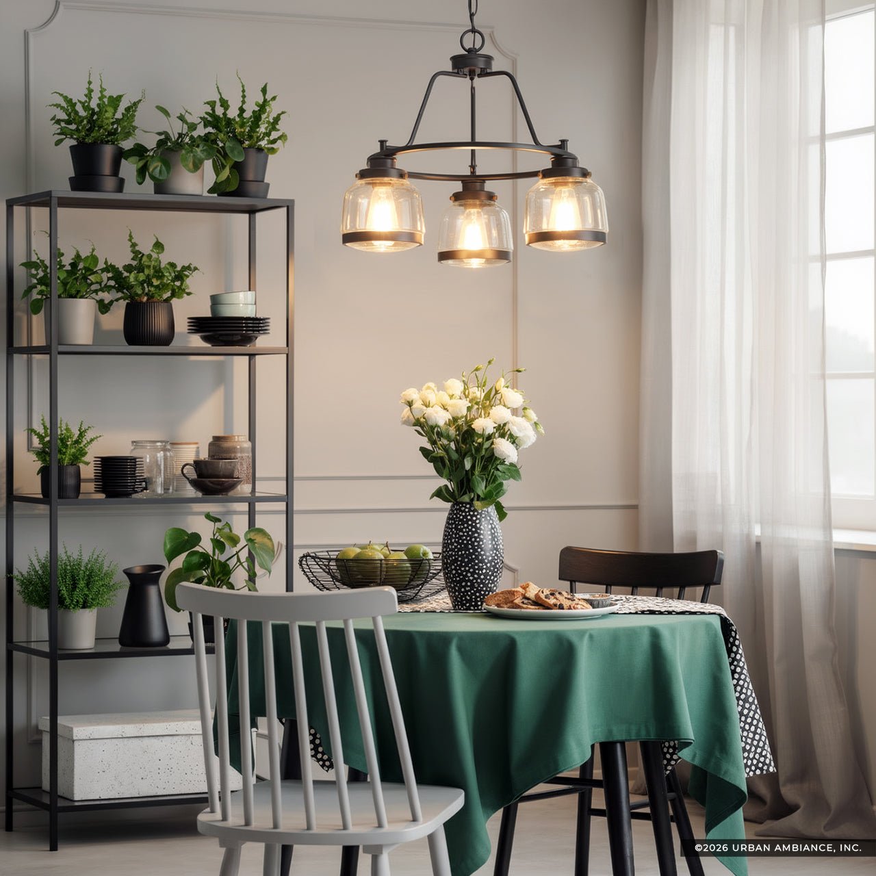 UHP2533 Luxe Industrial Chandelier, 18"H x 22"W, Olde Bronze Finish, Nottingham Collection
