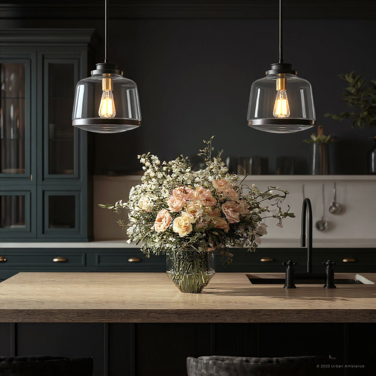 UHP2535 Luxe Industrial Pendant Light, 11"H x 11"W, Olde Bronze Finish, Nottingham Collection