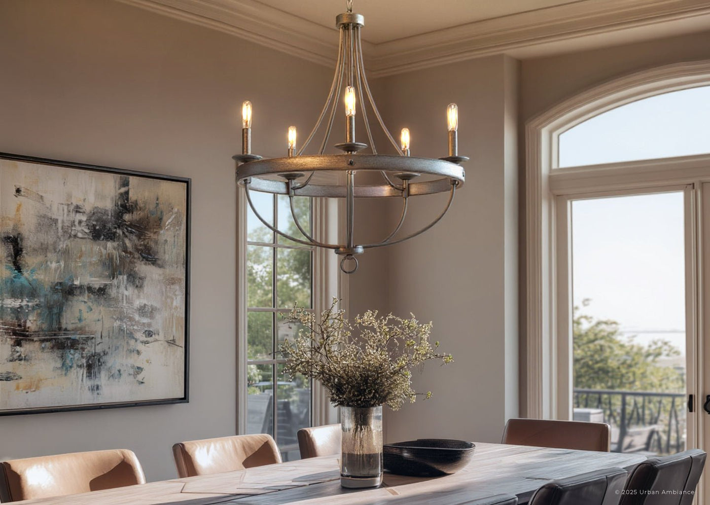 UHP2900 Farmhouse Farmhouse Chandelier, 30" x 26", Galvanized Steel Finish, Adelaide Collection