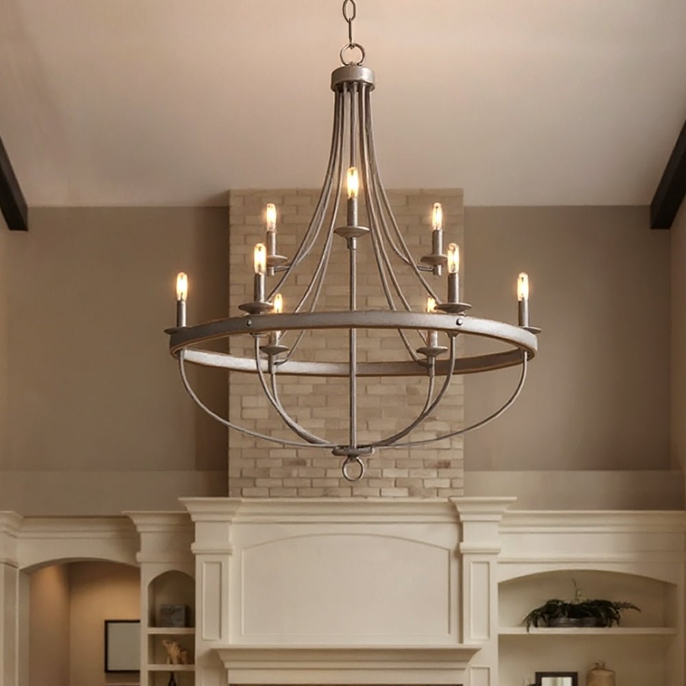 UHP2902 Farmhouse Farmhouse Chandelier, 40-1/2" x 35", Galvanized Steel Finish, Adelaide Collection