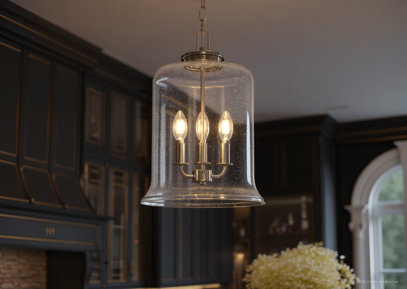 UHP3820 French Rustic Pendant Light, 17.125"H x 12.875"W, Brushed Nickel Finish, Missoula Collection