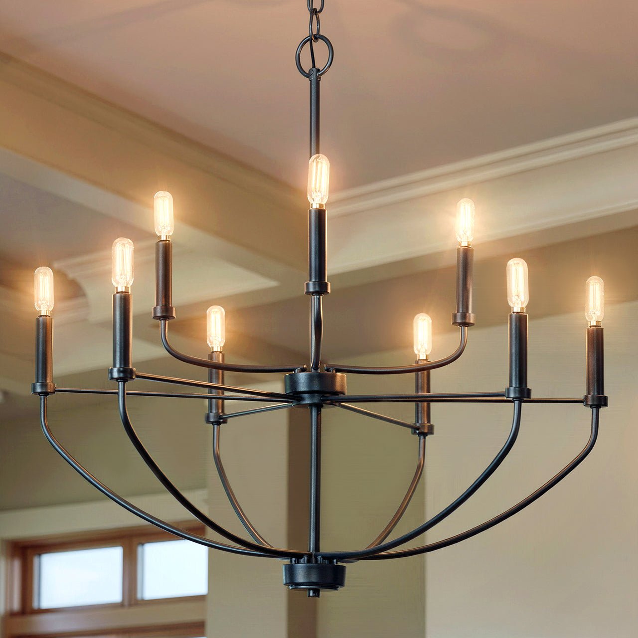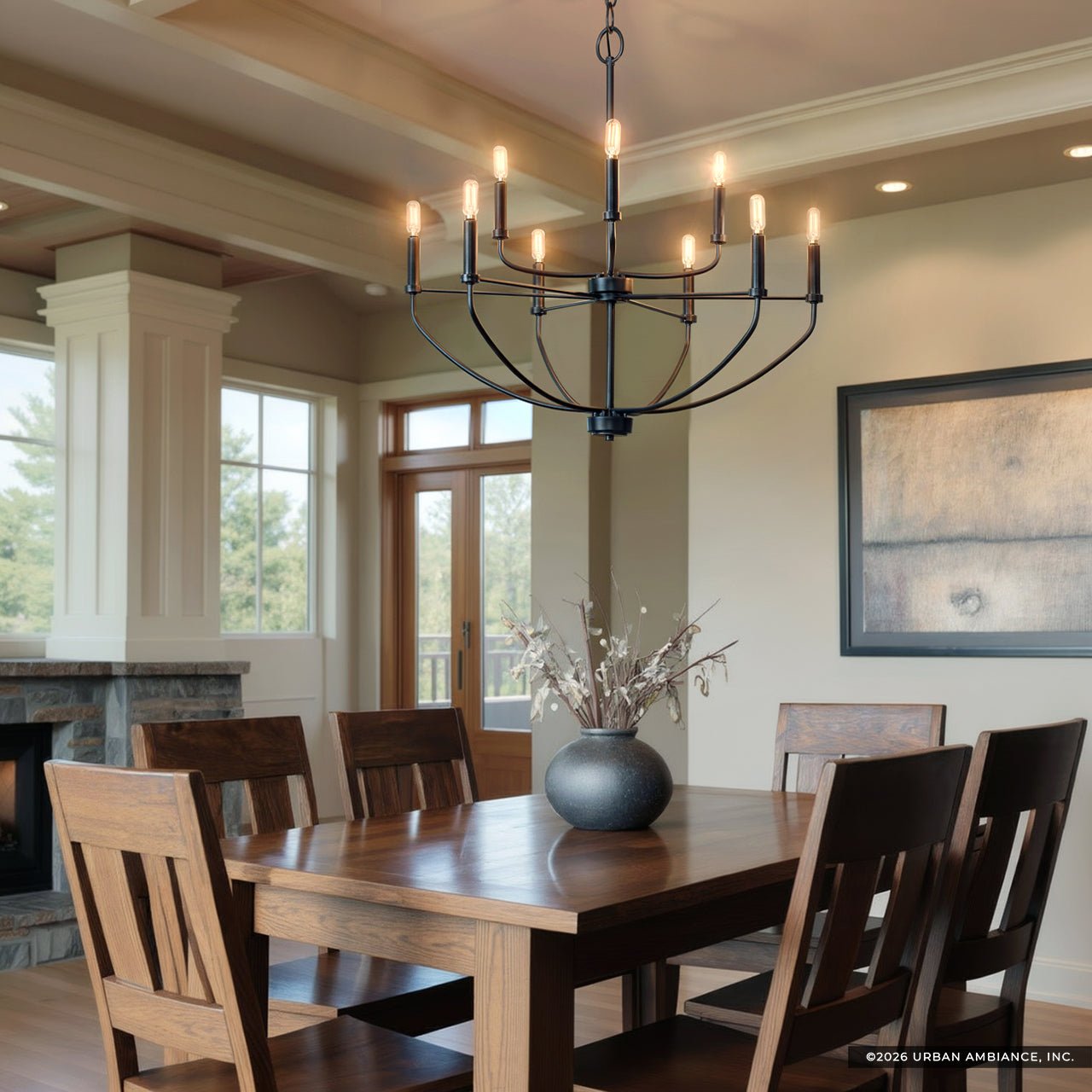 UHP3975 Modern Farmhouse Chandelier 27''H x 28''W, Midnight Black Finish, Armidale Collection